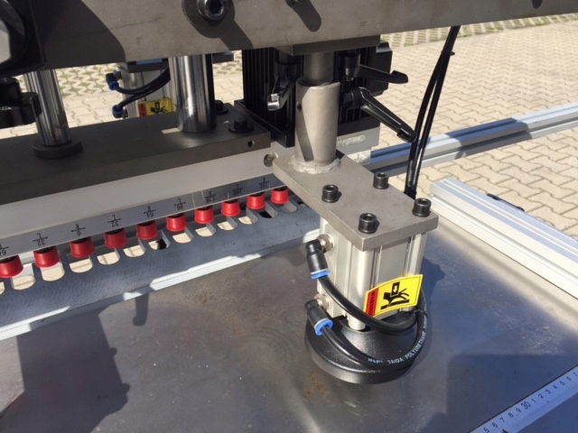 Агрегат вертикального сверления: 21 шпиндель, сверление сверху.