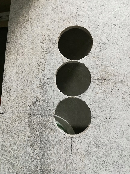 НИЖЕ ПРЕДСТАВЛЕНЫ ФОТОГРАФИИ ОТВЕРСТИЙ, СДЕЛАННЫХ В ПЛИТКЕ PORKEY С ИСПОЛЬЗОВАНИЕМ ОТВЕРСТИЙ SCHMITH