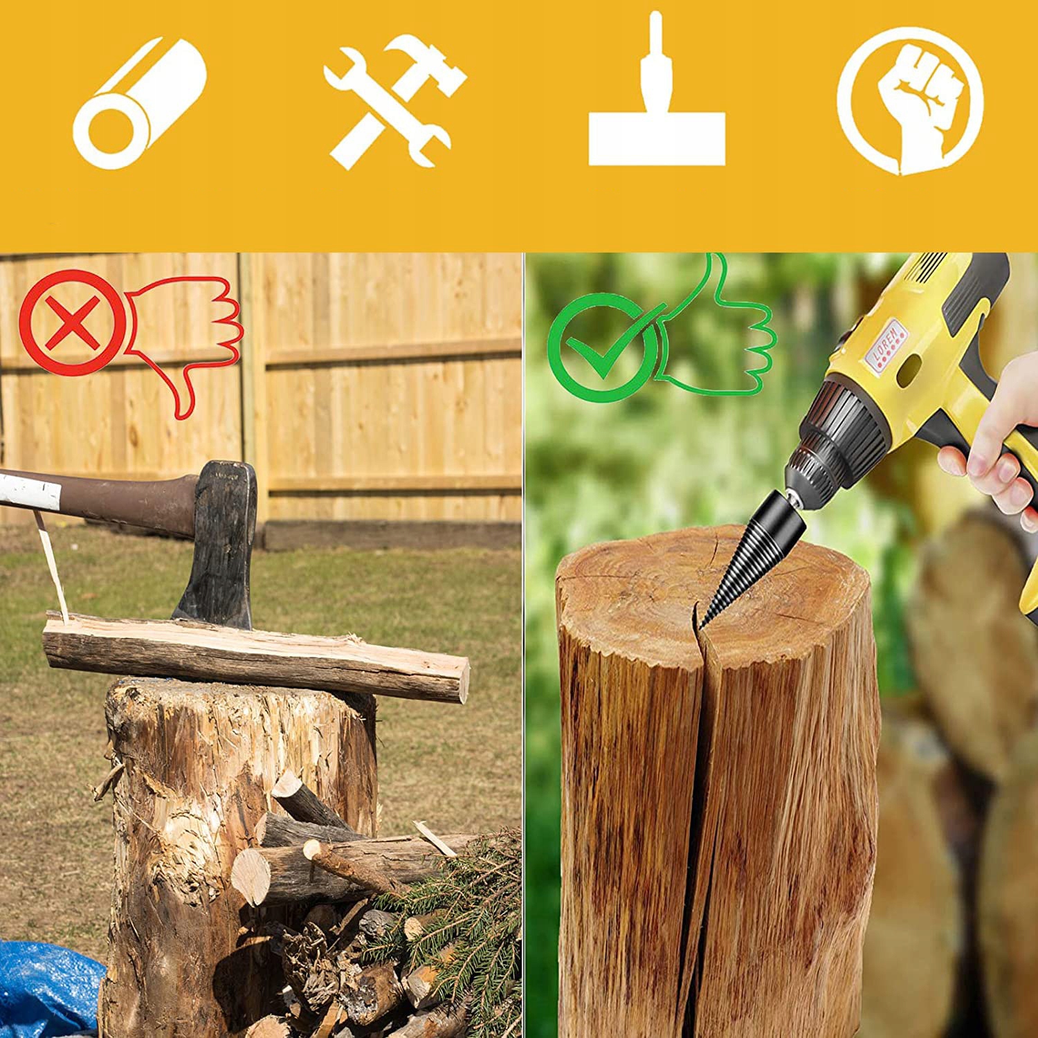 🪵 Простота в использовании — просто установите сверло в дрель. и дрель. Дрова можно легко перевернуть. Нет движущегося лезвия, не нужно беспокоиться о детских топорах, он универсален и может комбинироваться со всеми возможными машинами.