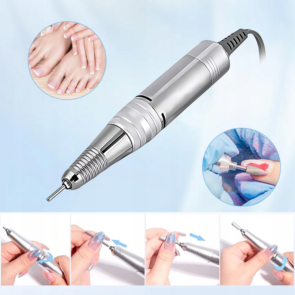 Улучшенная электрическая пилочка для ногтей. Эта электрическая пилочка для ногтей специально оснащена 6 гнездами для сверл, что позволяет выбирать различные типы сверл при подпиливании ногтей. Его отличительными особенностями являются стабильная работа и увеличенный срок службы, что позволяет экономить время и затраты.
