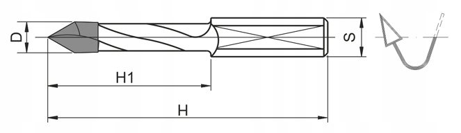 Сверло сквозное правое D = 4x50 / S = 10 / H = 70