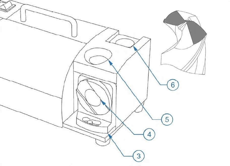 В гнезде №4 мы можем сделать стандартную заточку угла вершины в диапазоне от 90° до 140°. Обычная заточка используется для обычного сверления стали, цветных металлов и пластмасс.