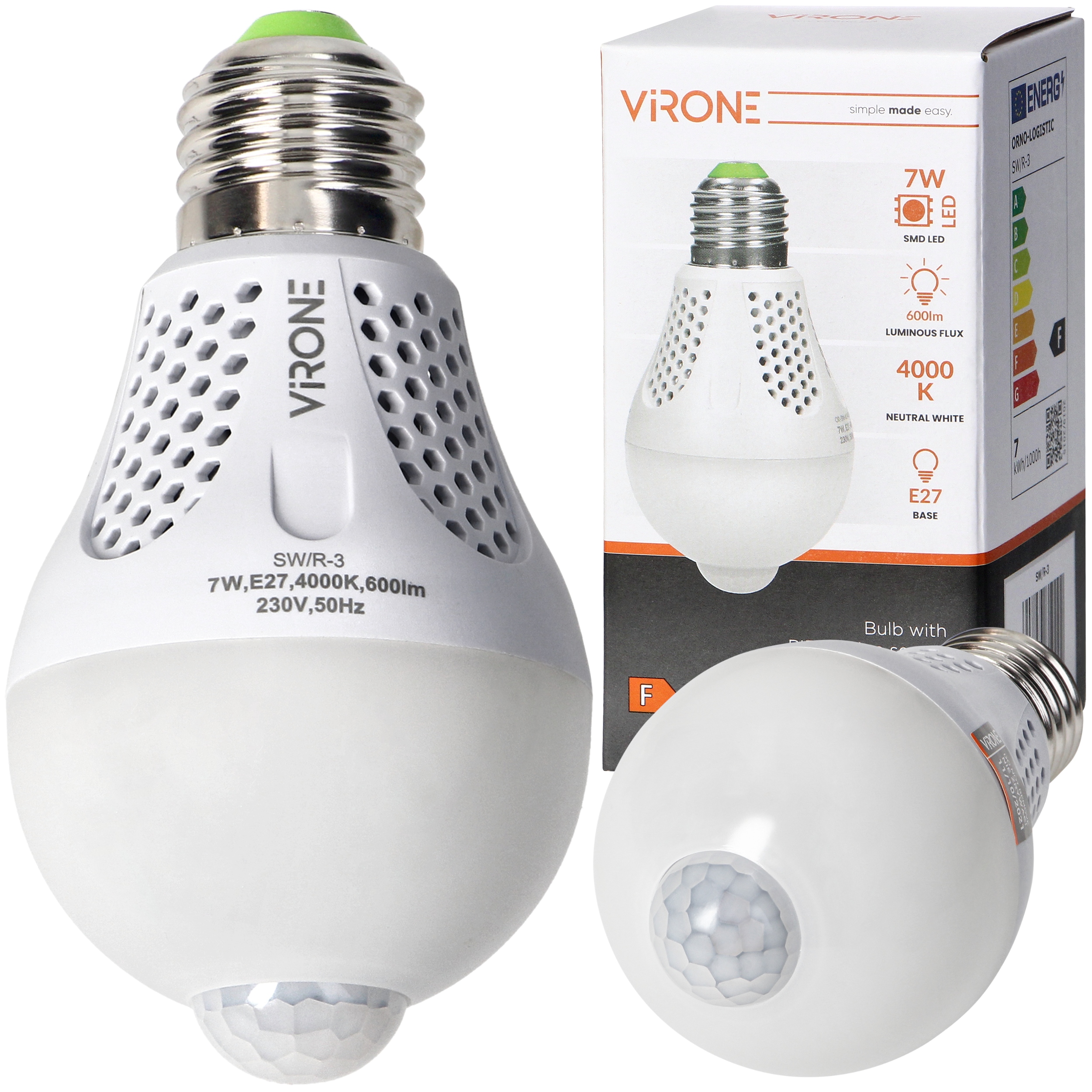 СВЕТОДИОДНАЯ ЛАМПА E27 7ВТ С ДАТЧИКОМ ДВИЖЕНИЯ И СУМЕРКИ НЕЙТРАЛЬНАЯ 4000К