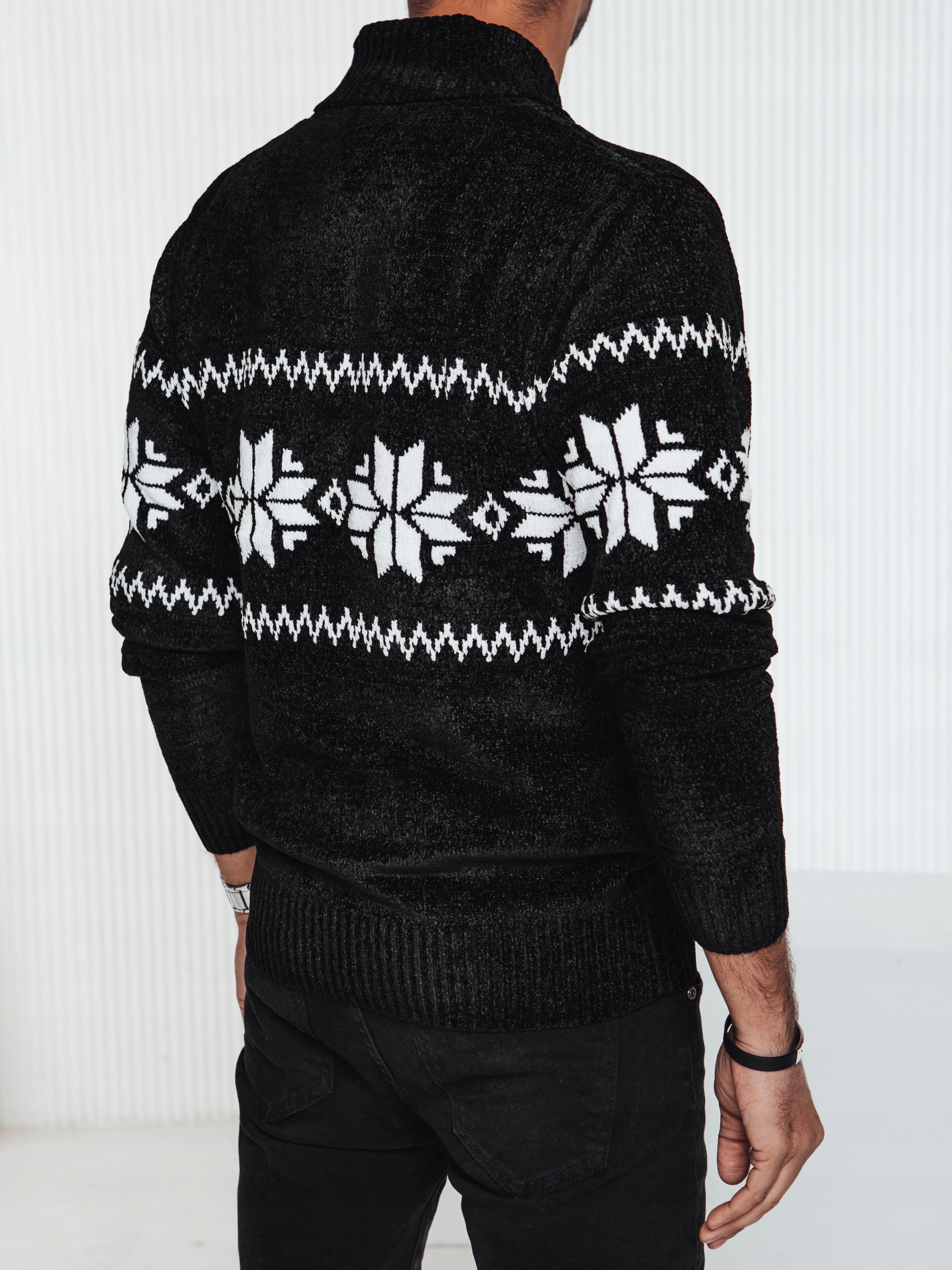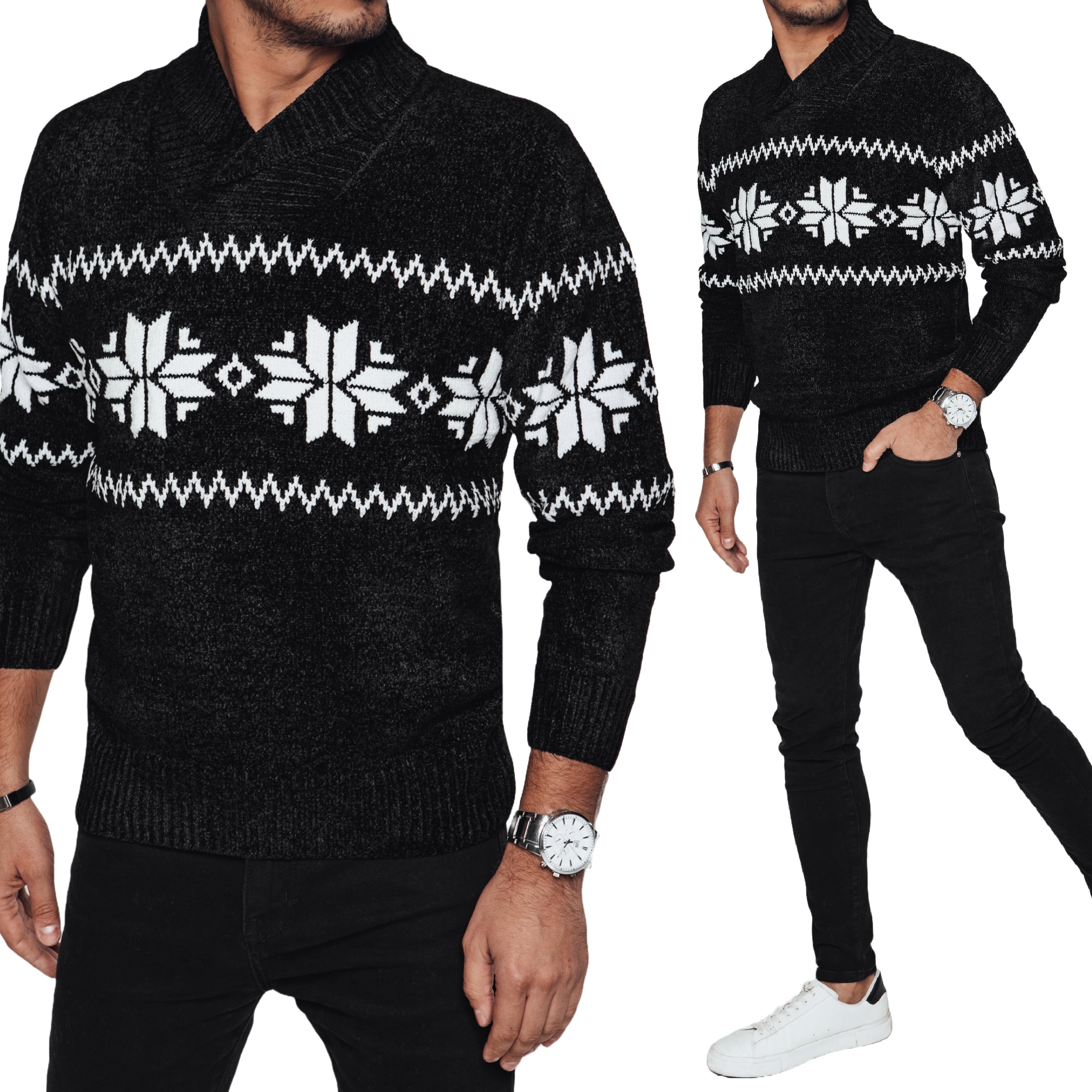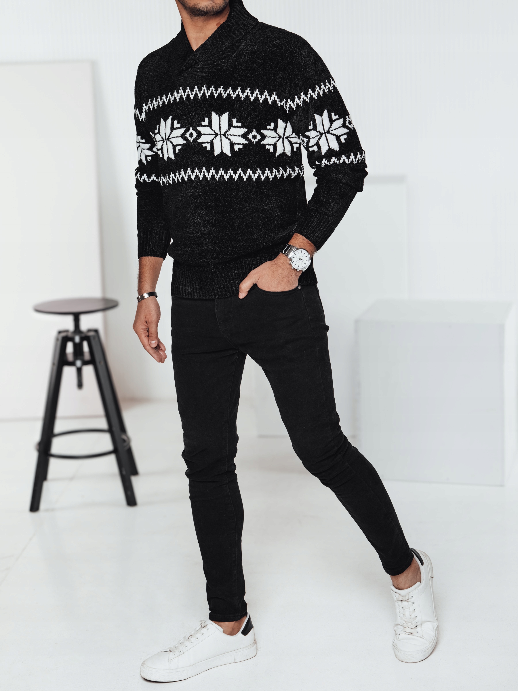Мужской свитер норвежский рисунок черный wx2268 - l