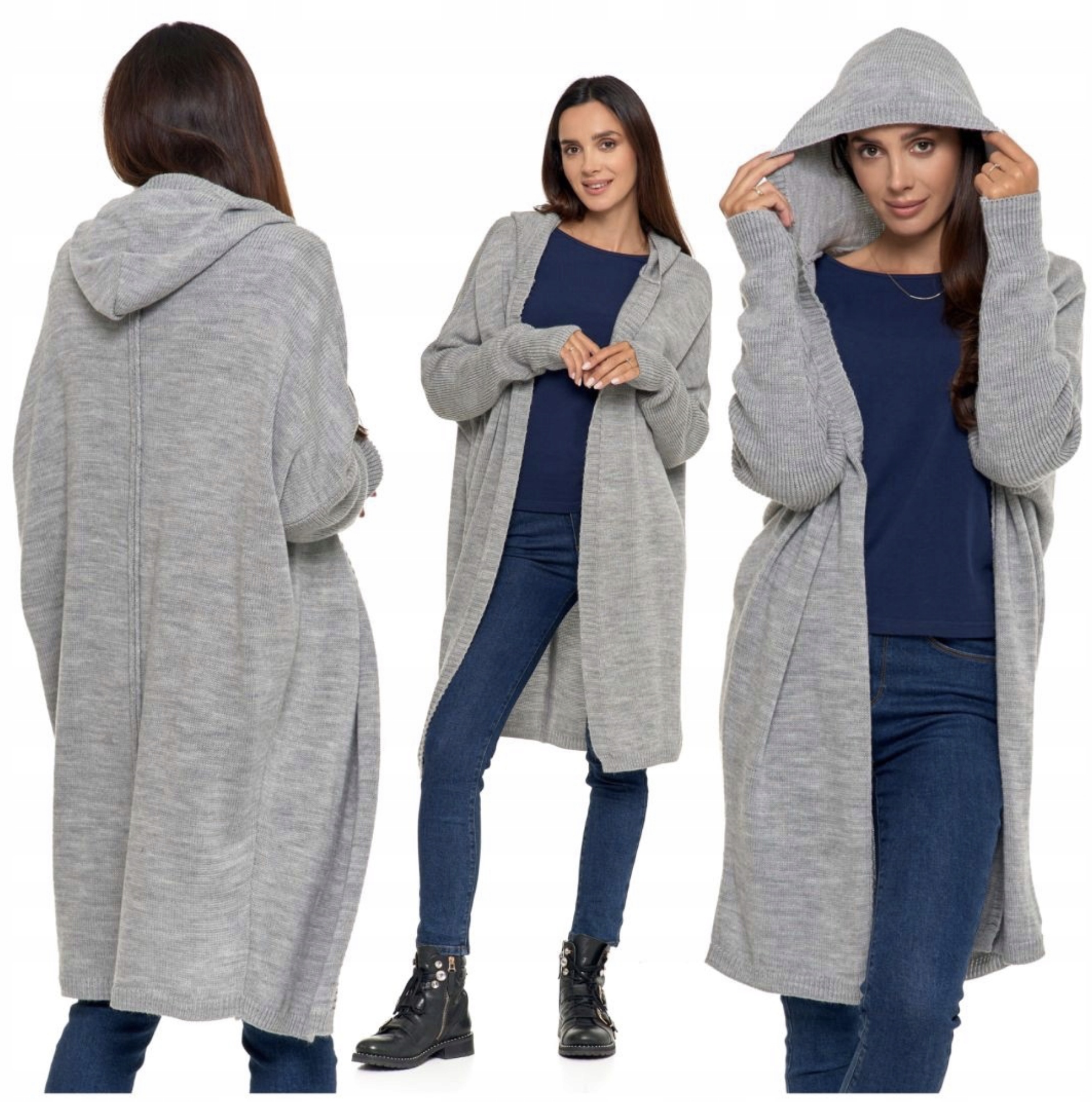 Женский свитер длинный кардиган с теплым капюшоном с теплым масштабным серым мораджом Uni h1>