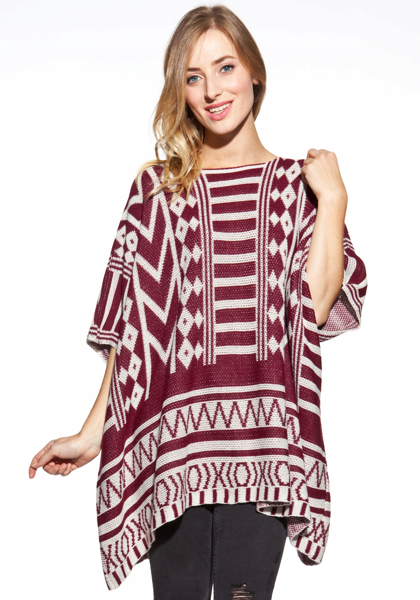 Свитер-пончо с ацтекским узором в стиле бохо