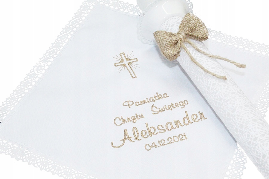 Рабби с вышивкой имени и даты Крещения, размеры 26х26