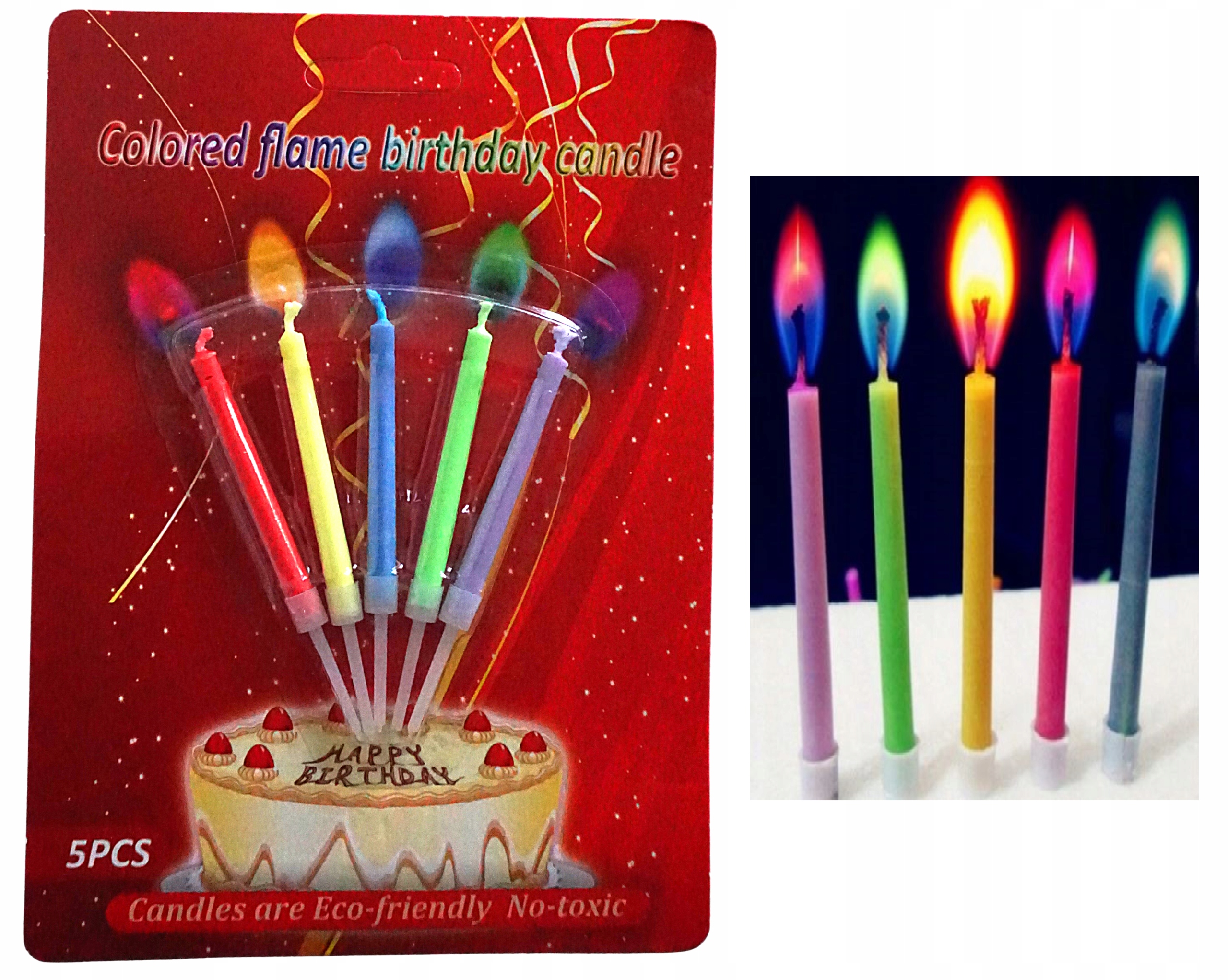ДЕНЬ РОЖДЕНИЯ СВЕЧИ ЦВЕТНОЕ ПЛАМЯ 5 ШТ. НА ТОРТ