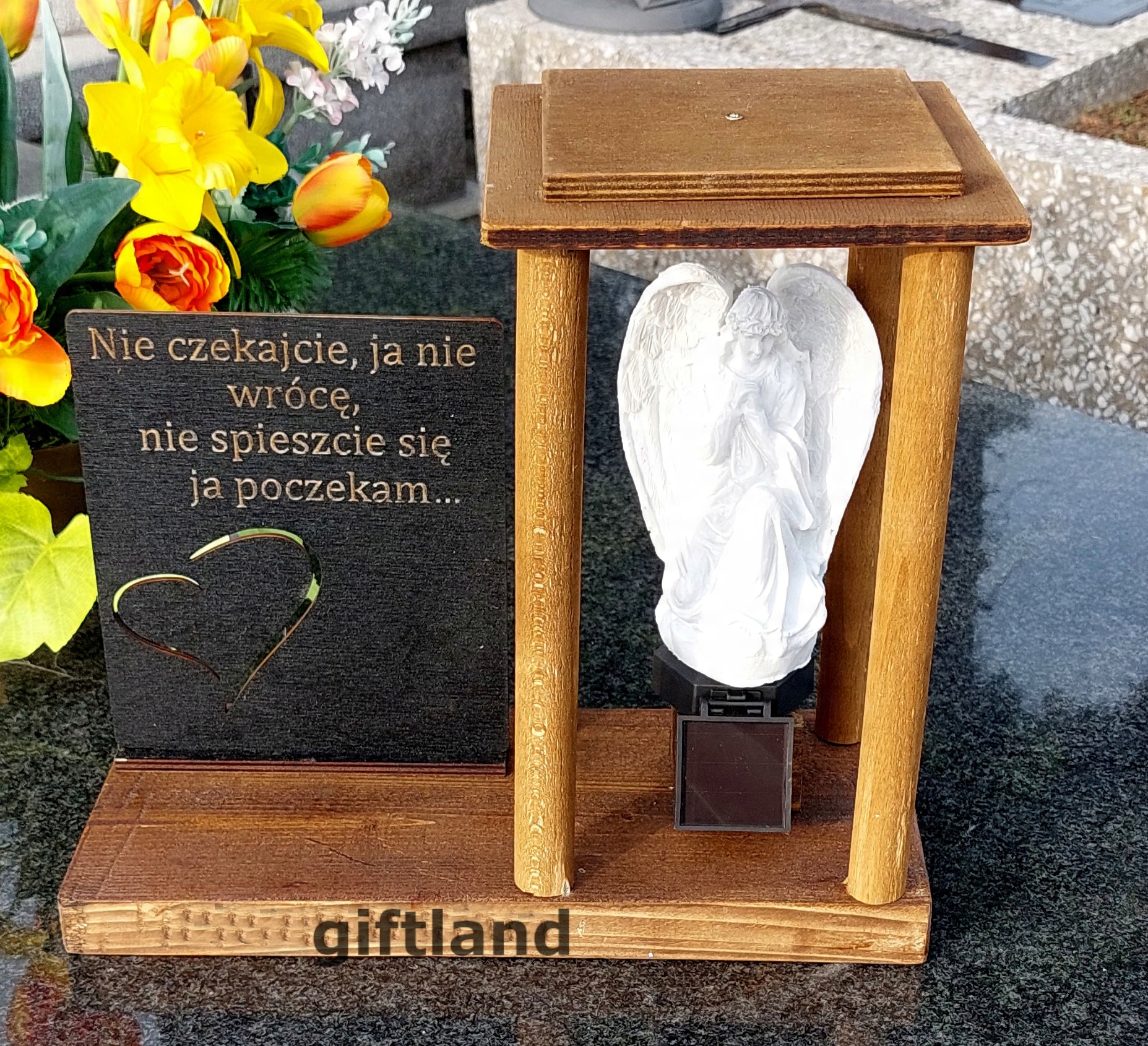 Красивая и уникальная деревянная ракушка с солнечным фонарем - Ангел и подставка с гравировкой. б> Идеально подходит в качестве украшения и выражения памяти ко Дню бабушки и дедушки.