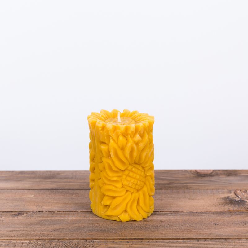 ВАЛИКОВАЯ ВОСКОВАЯ СВЕЧА С ПОДСОЛНЕЧНИКОМ
