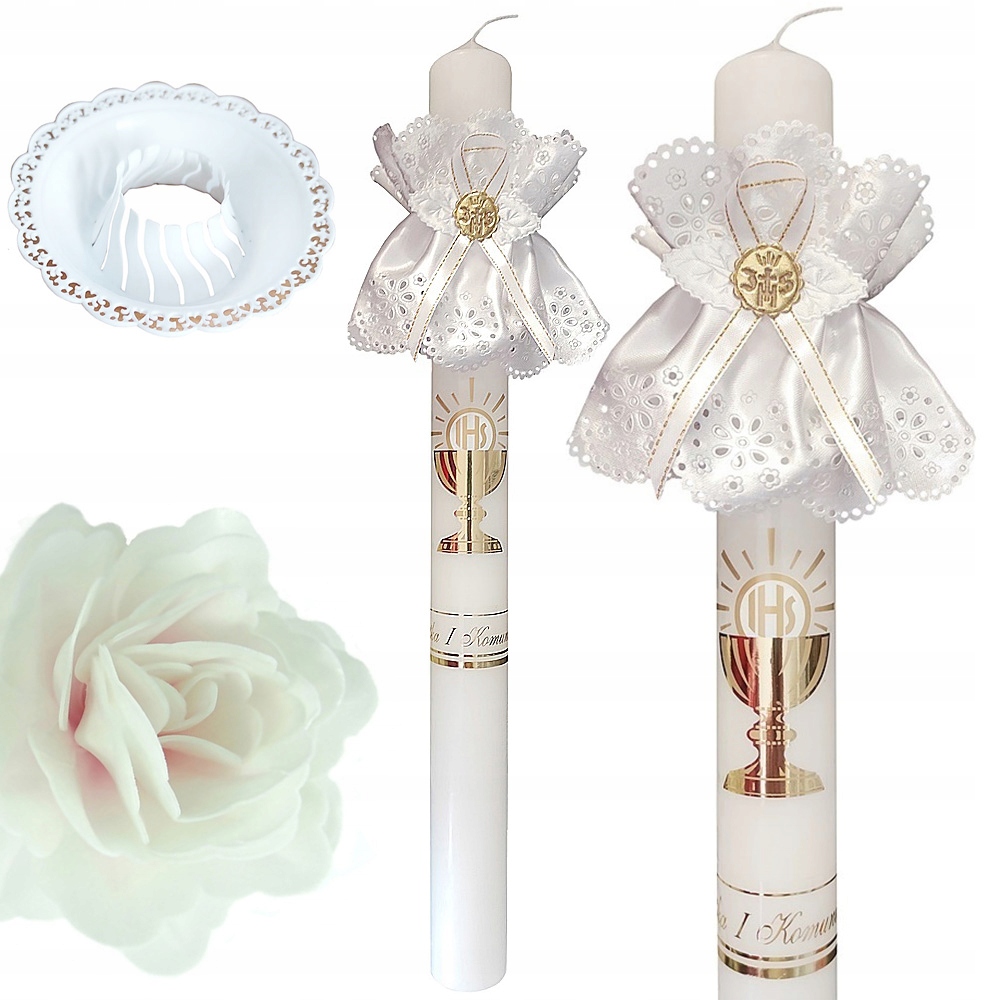 ПРОСТАЯ ЭЛЕГАНТНАЯ СВЕЧА ДЛЯ ПЕРВОГО СВЯТОГО ПРИЧАСТИЯ С КРАСИВЫМ ДЕКОРАТИВНЫМ ПРОФИЛЕМ + КАПЕЛЬНИЦОЙ
