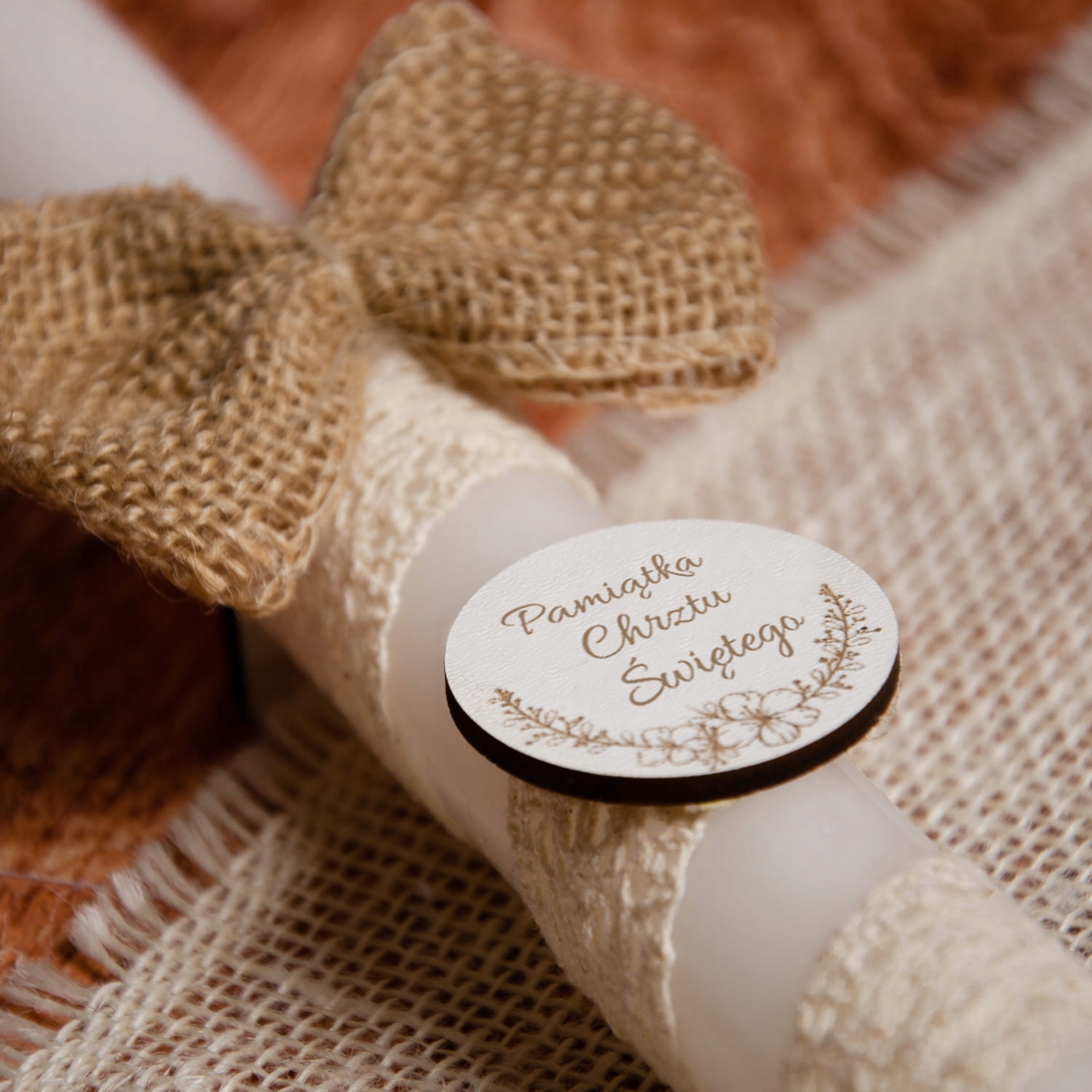 Красивая свеча для крещения, ручная. Подготовлен с наибольшим чувством стиля. Сделано из компонентов высочайшего качества. Свеча украшена в стиле Бохо. Деликатные, бежевые цвета идеально подходят как сувенир крещения, как для девочки, так и для мальчика. Джут -лук добавляет очарование