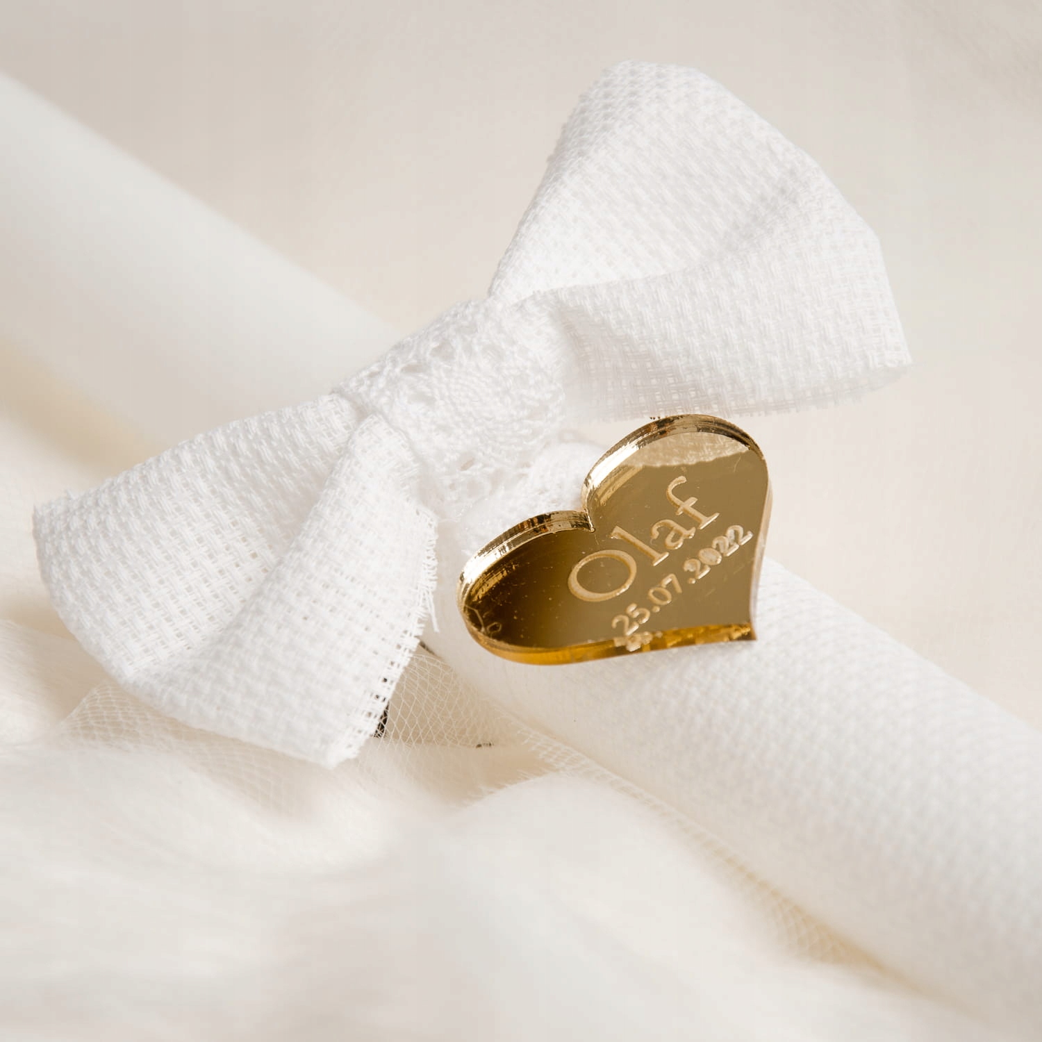 Красивая крестильная свеча, декорированная вручную. Подготовлено с величайшим чувством стиля. Изготовлен из компонентов высочайшего качества. Свеча, выполненная в нежных, белых тонах, подойдет в качестве сувенира на Крещение как девочке, так и мальчику. Ее очарование усиливает бантик с персонализированной гравировкой на золотом акриловом зеркале.