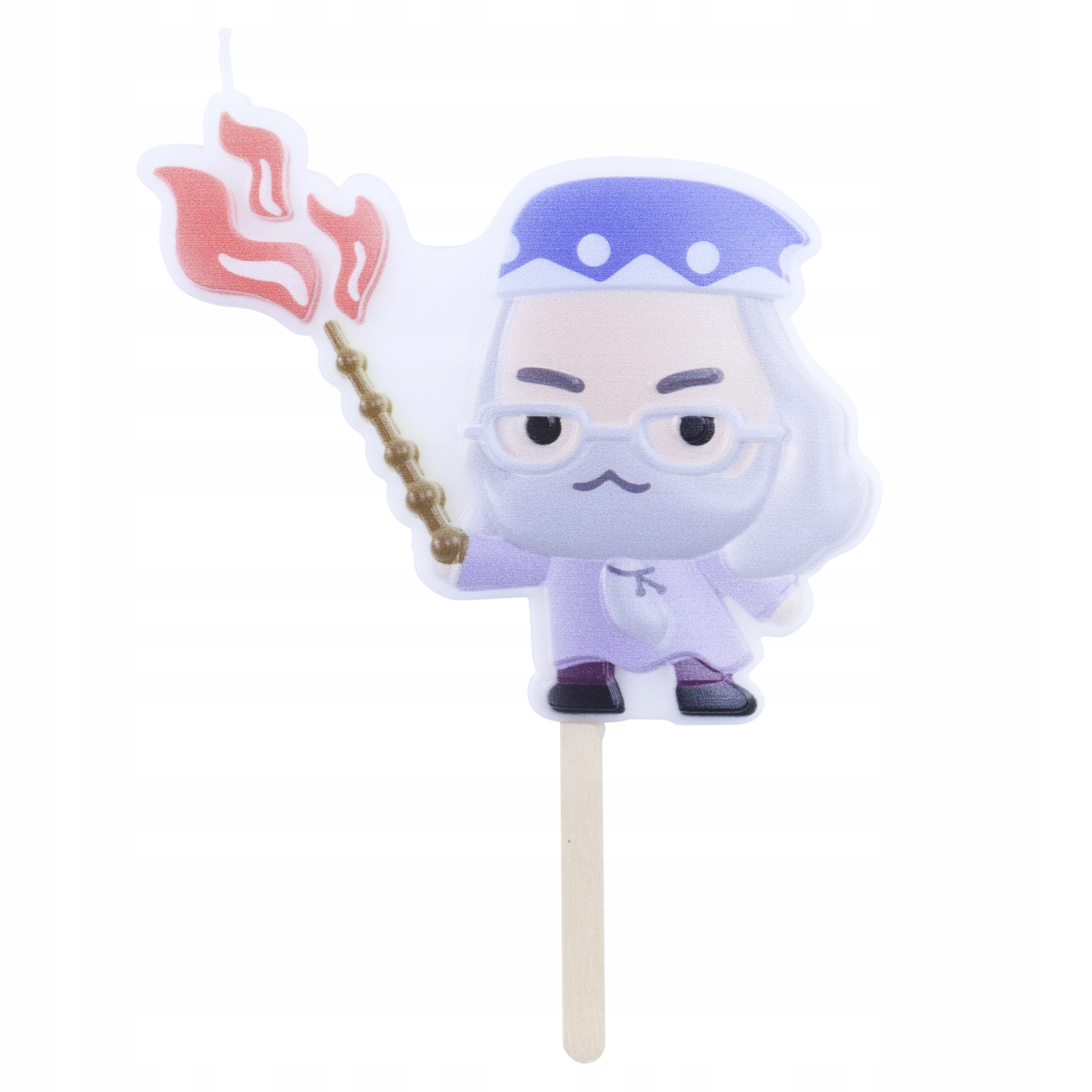 В комплект входит: 1 тортовая свеча из парафина в стиле Альбуса Дамблдора. Фитиль помещается в палочку так, чтобы не обжечь лицо персонажа.