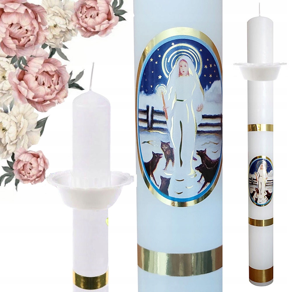 СВЕЧА С ПЧЕЛИЧНЫМ ВОСКОМ С ИЗОБРАЖЕНИЕМ БОГОРОДИЦЫ СВЕЧА + КАПЕЛЬНИЦА