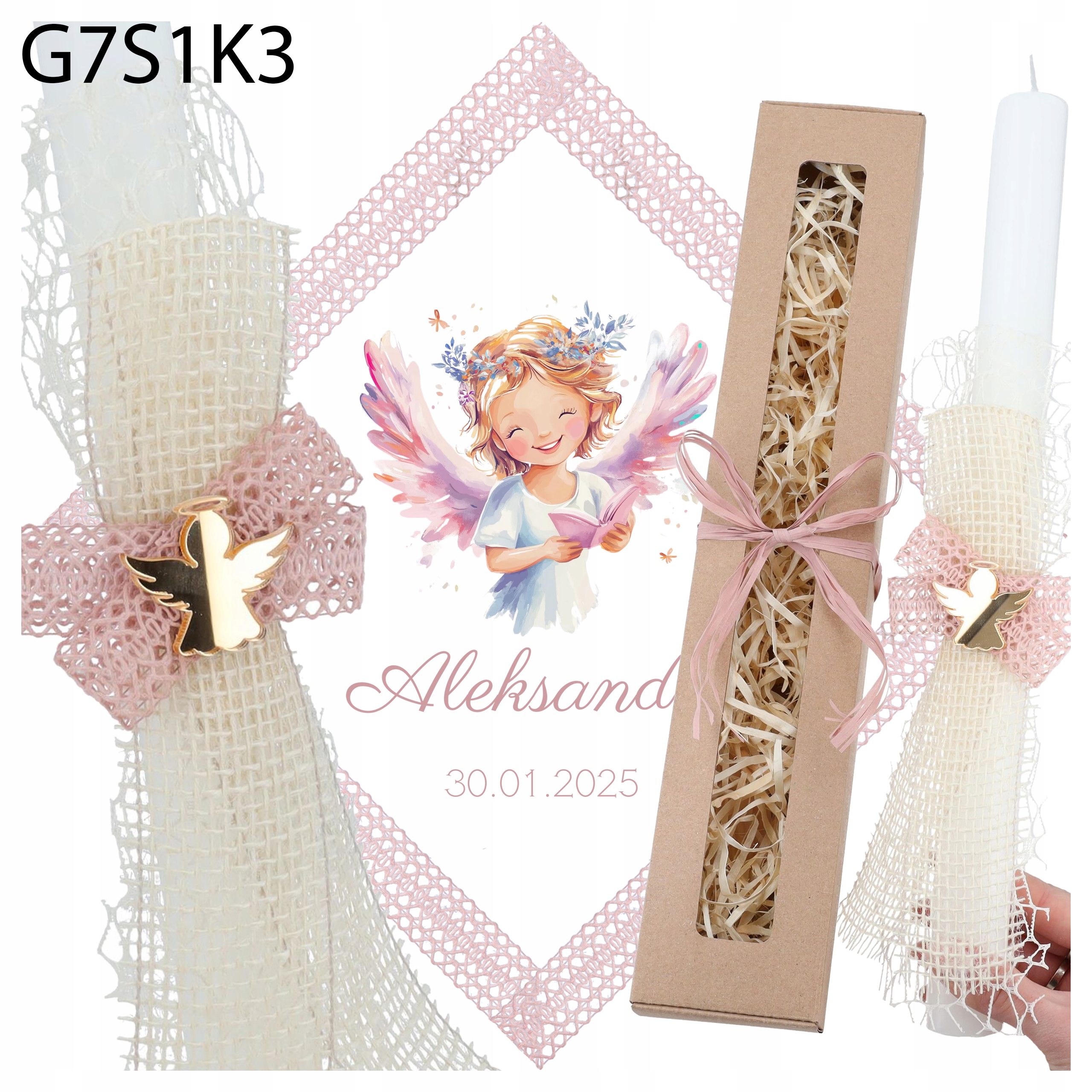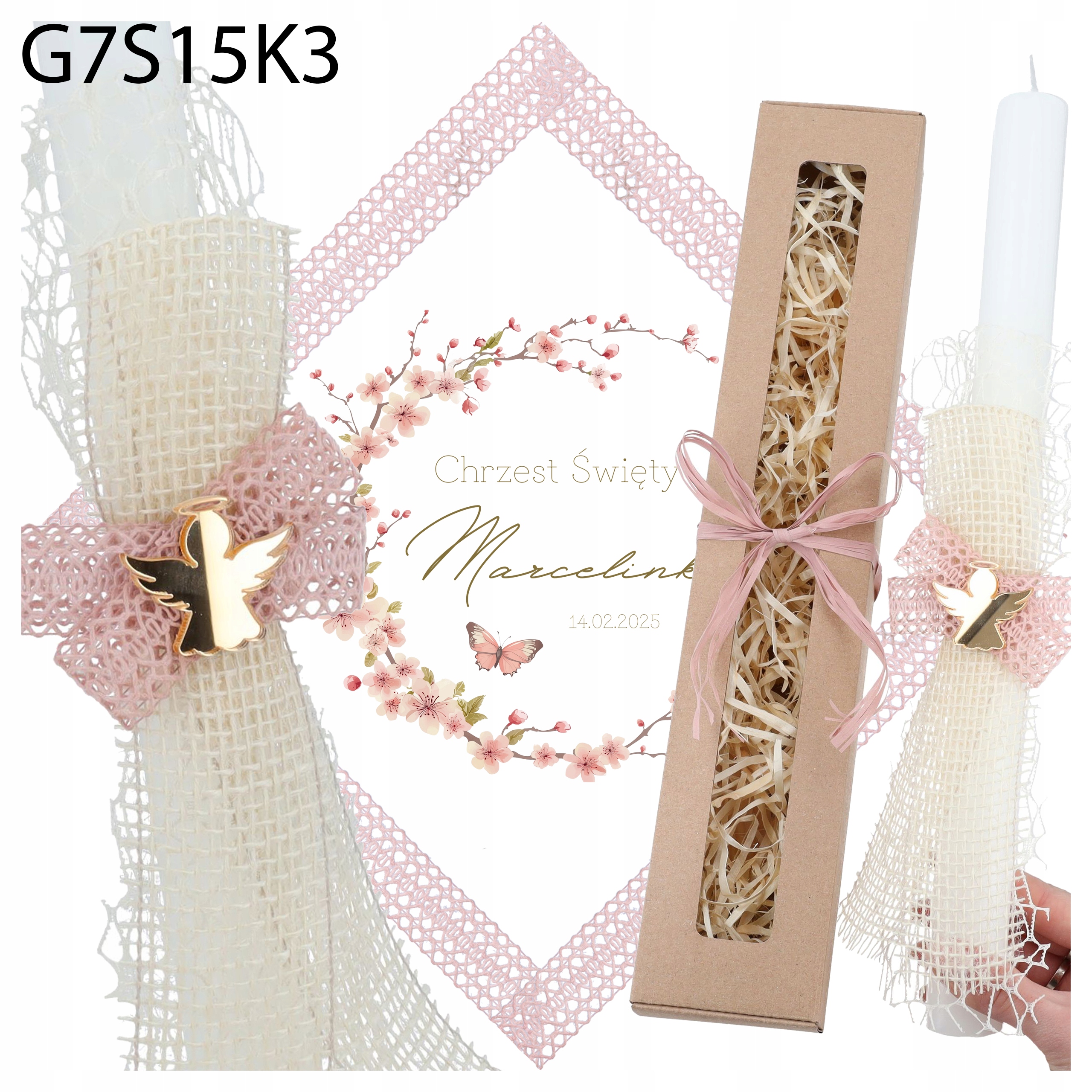 - это уникальный набор, который подчеркнет торжественную природу крещения и станет сувениром в течение многих лет. Свеча с тонким кружевом и золотой капустой в сочетании с персонализированной одеждой делает все это очень элегантно и символично.