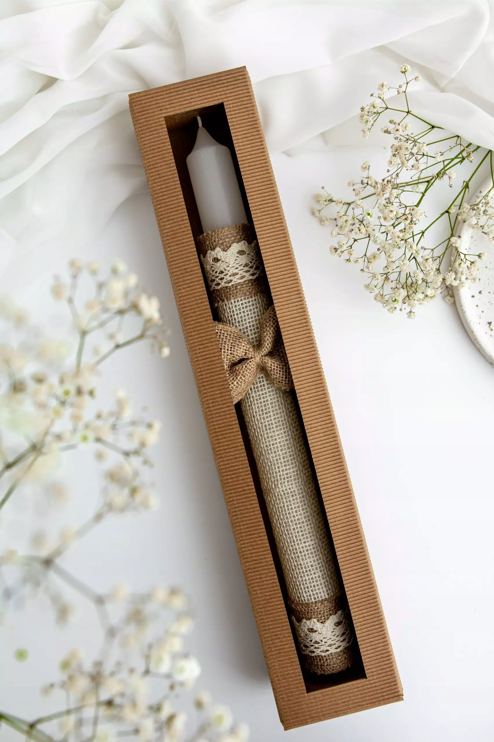 Это твердая коробка с высококачественной гофрированной доской , является идеальным дополнением к Candle для святого крещения .