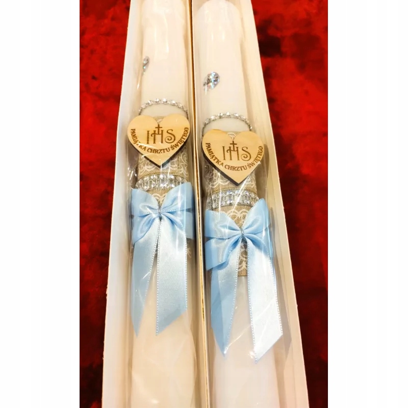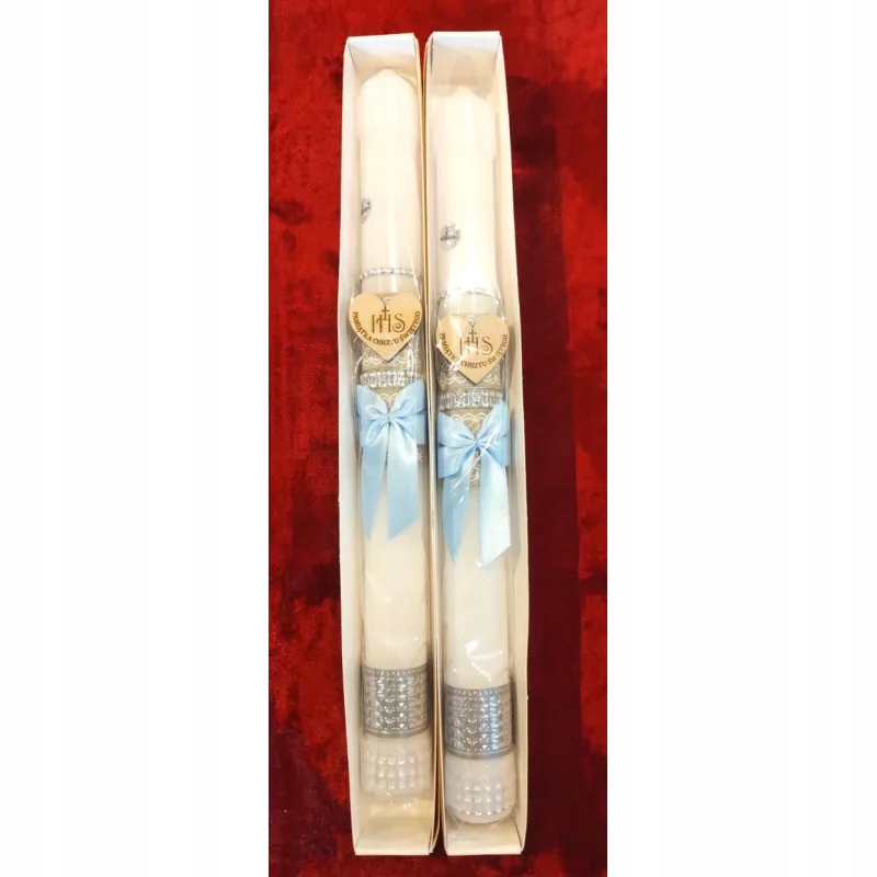 крещение свеча. Сувенир крещения - с синим луком, вкрапленным с лентой