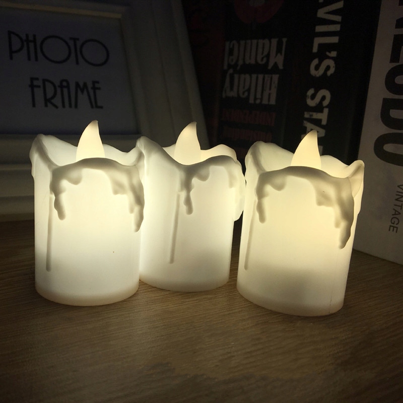 Свеча кремового цвета и при включении светится постоянным теплым желтым светом.