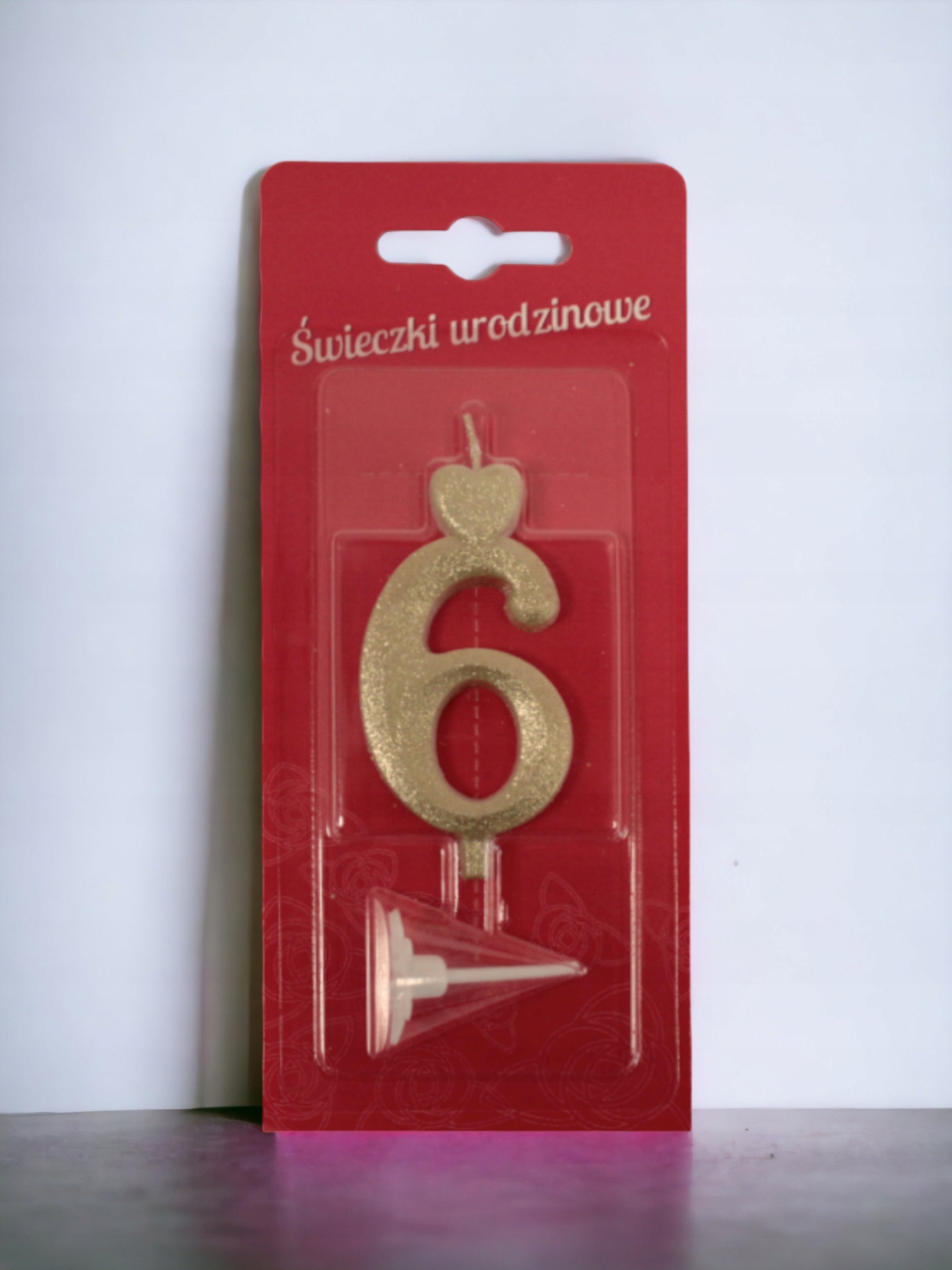 ✅ **Свеча для торта на день рождения — номер 6 — блестки, золото — 10 г**