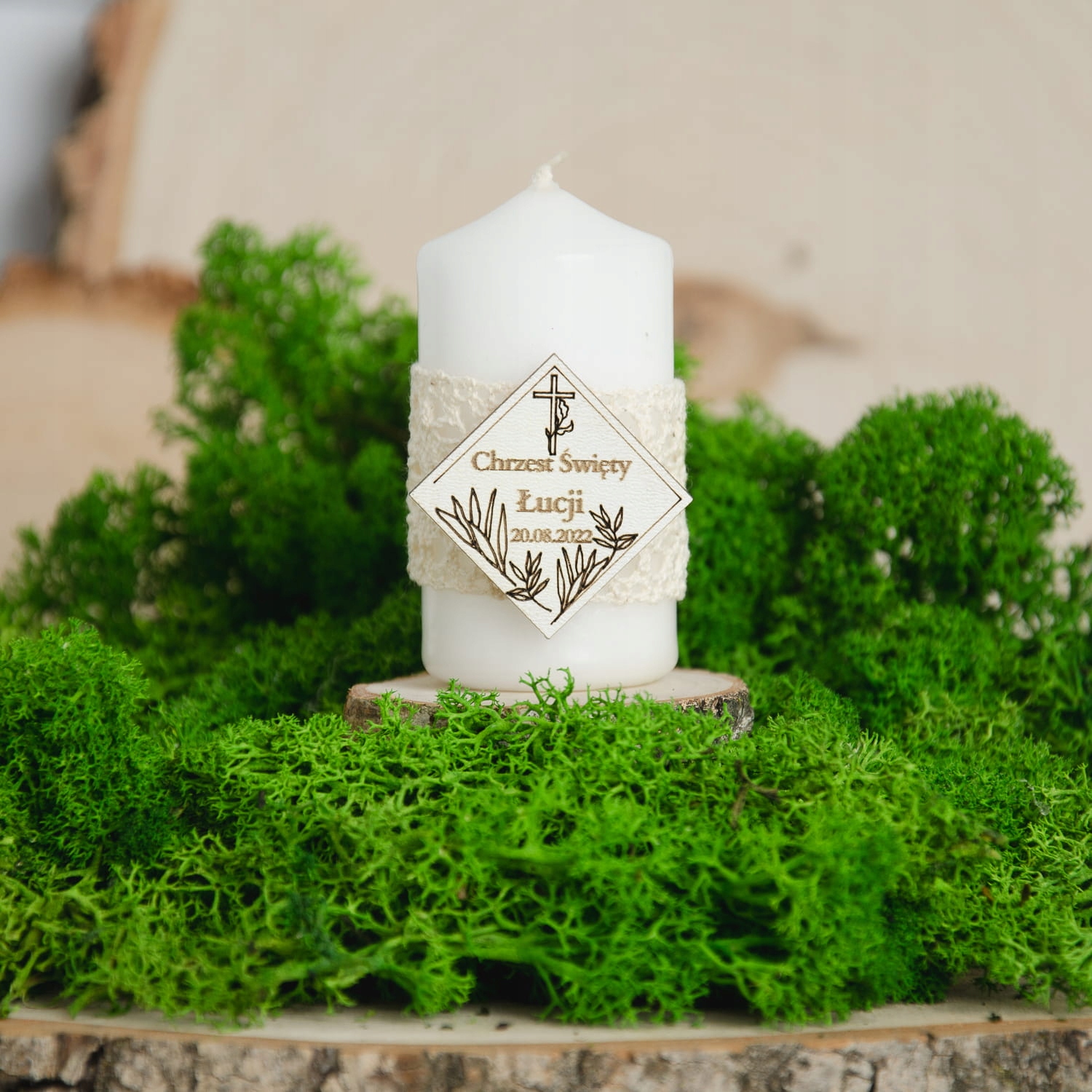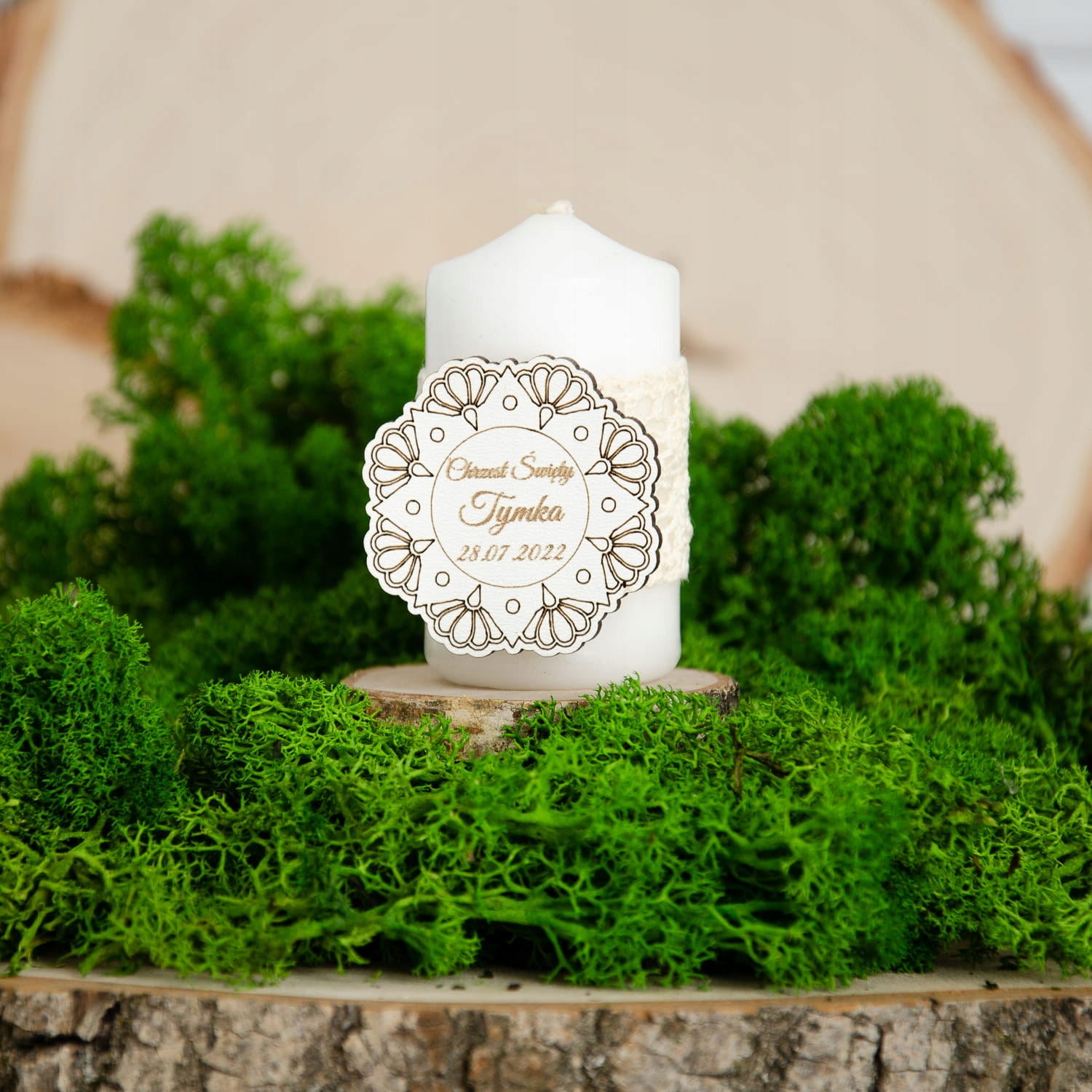 Свечи ставятся на деревянную подставку из среза березы диаметром примерно 5-6 см. см.