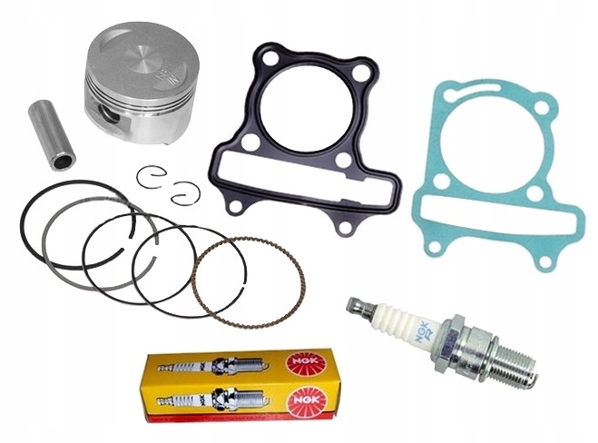комплект включает в себя: поршень, булавка, защита, кольца, уплотнения цилиндров, свеча 10 ngk