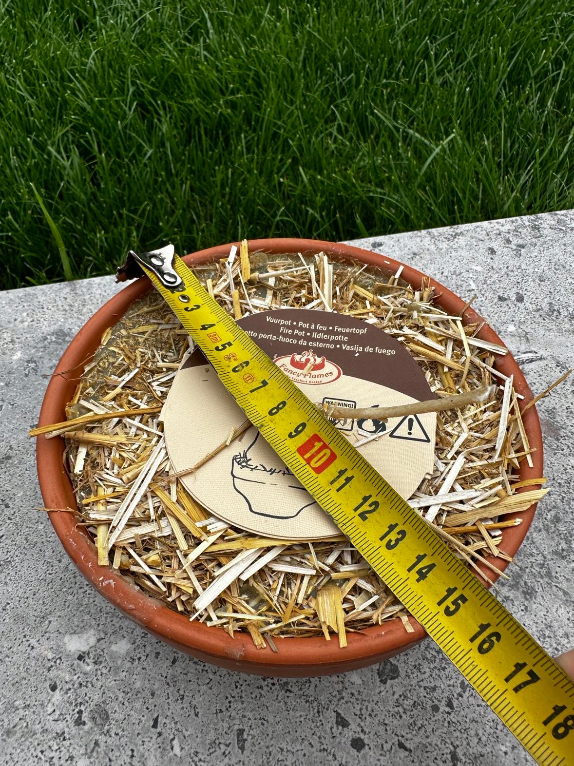 Терракотовый горшок был наполнен смесью сена и свечного воска.