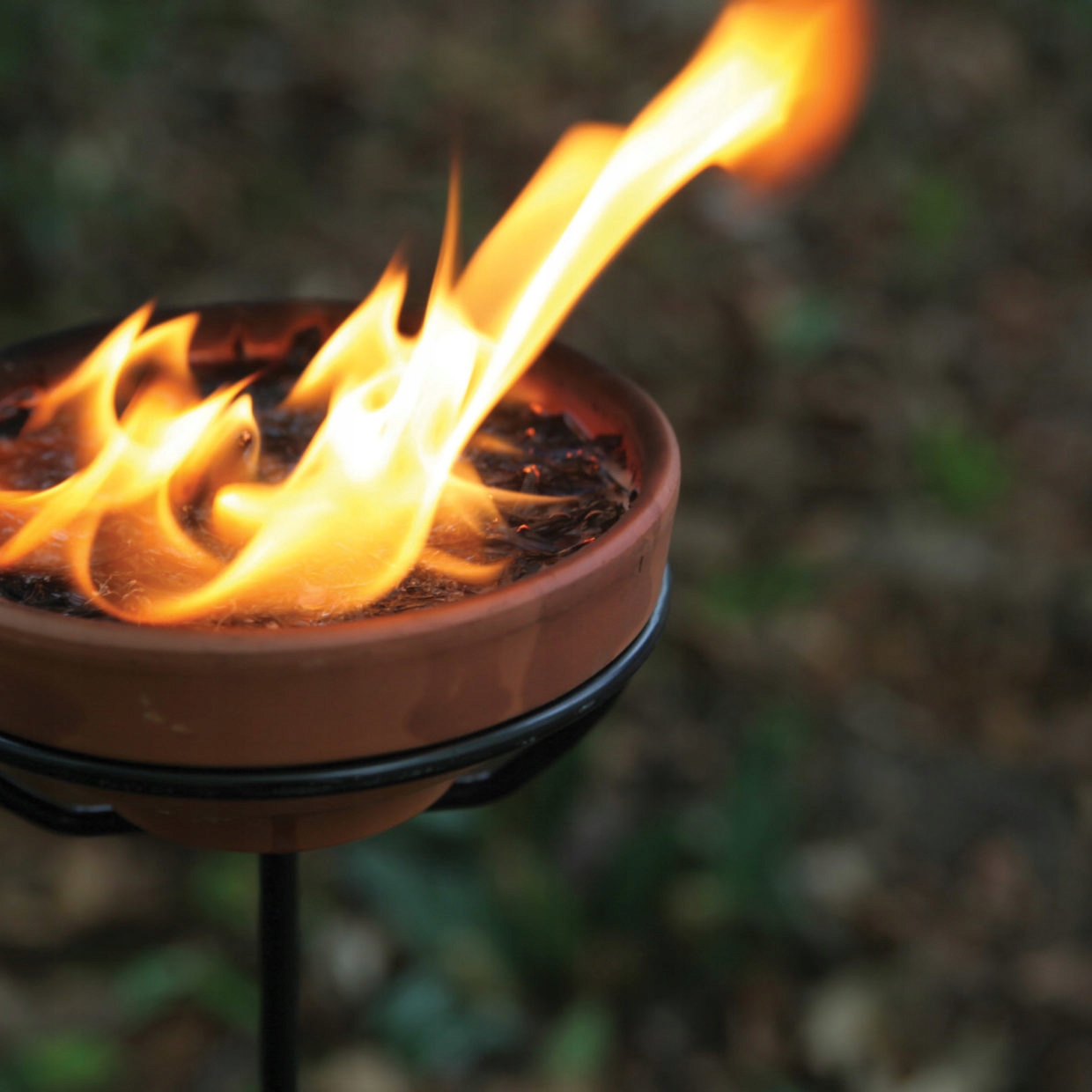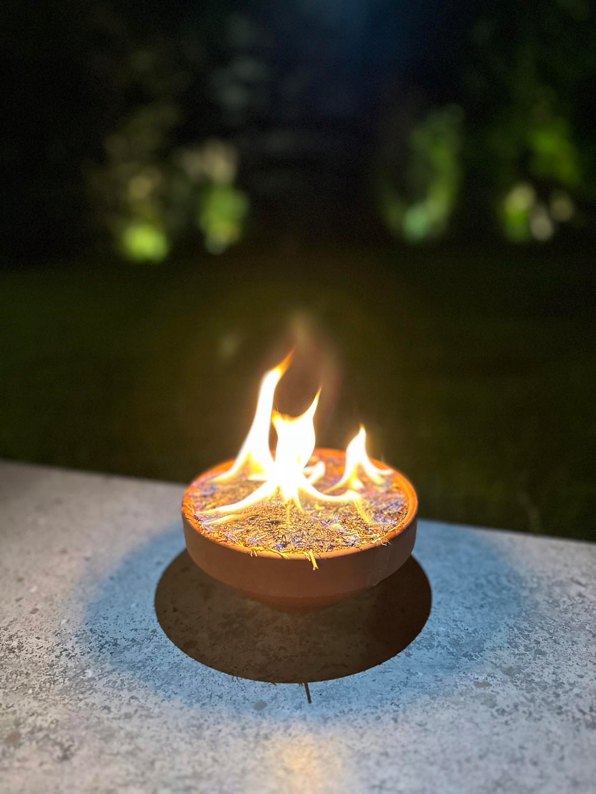 Этот соломенный горшок представляет собой настоящий садовый факел, создающий атмосферное полное пламя.