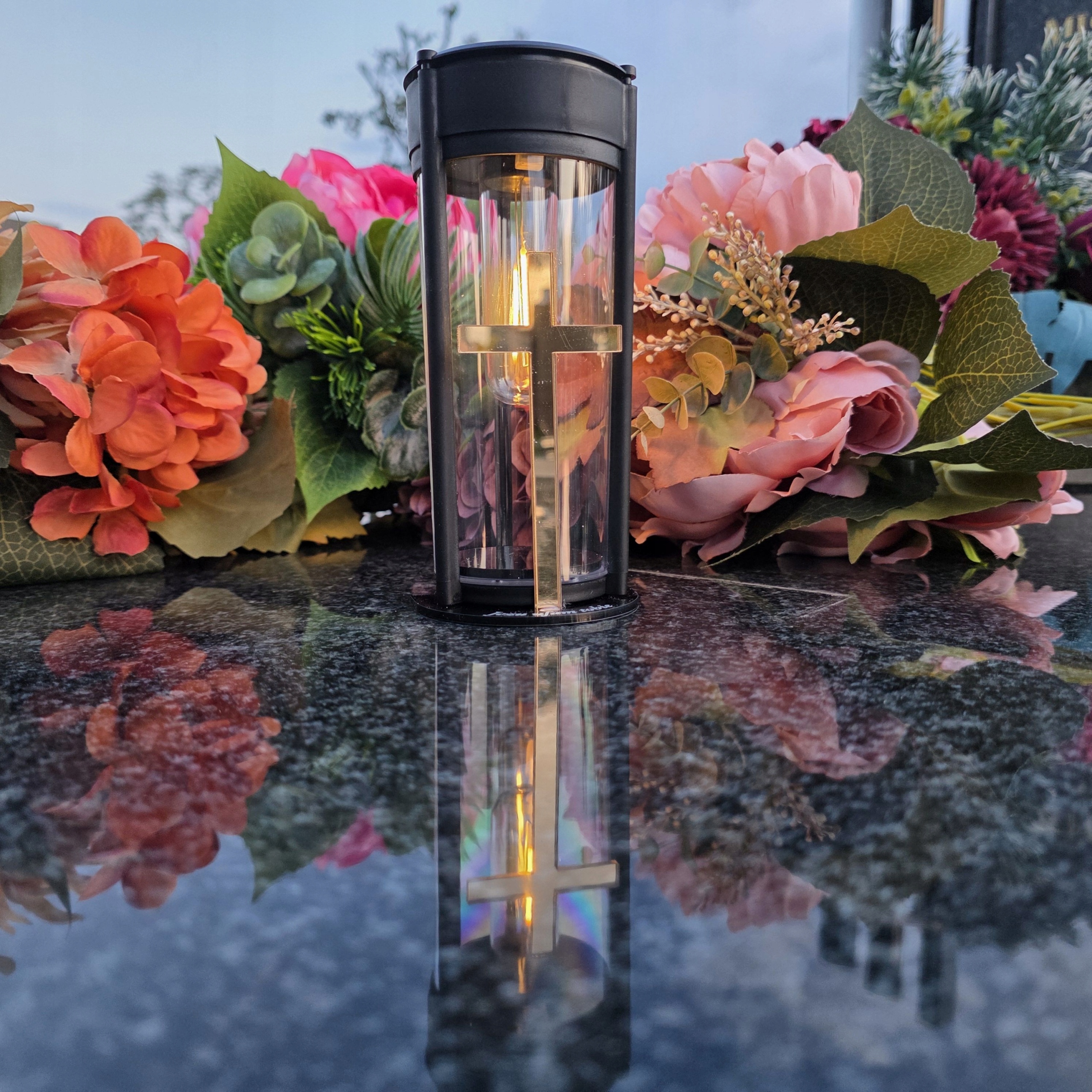 СОЛНЕЧНАЯ СВЕЧА, ФОНАРЬ НА МОГИЛУ, СТАТУЭТКА НА КЛАДБИЩЕ С КРЕСТОМ