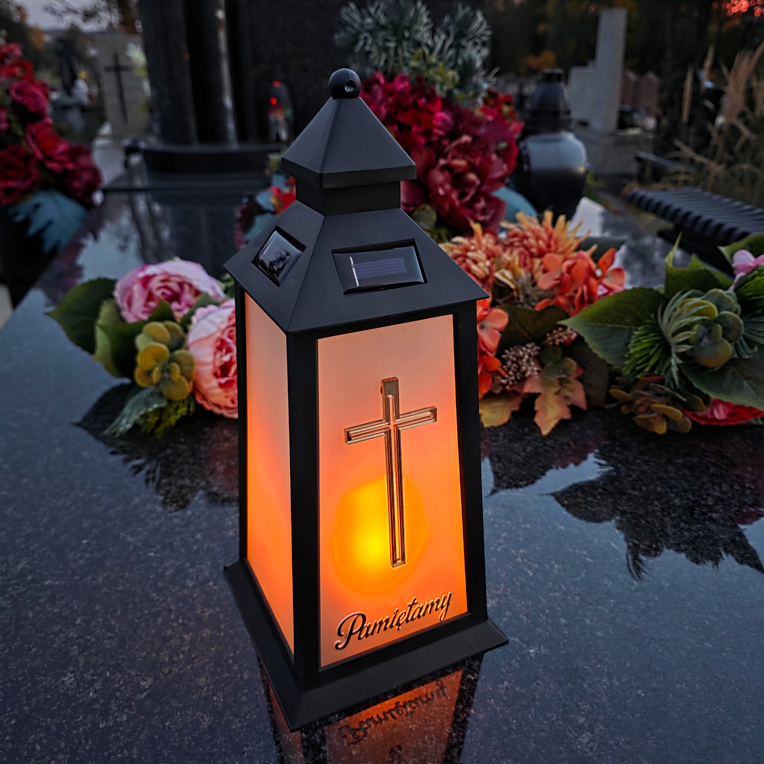 СВЕЧА солнечный светодиодный могильный фонарь СТАТУЭТКА для кладбища с КРЕСТОМ