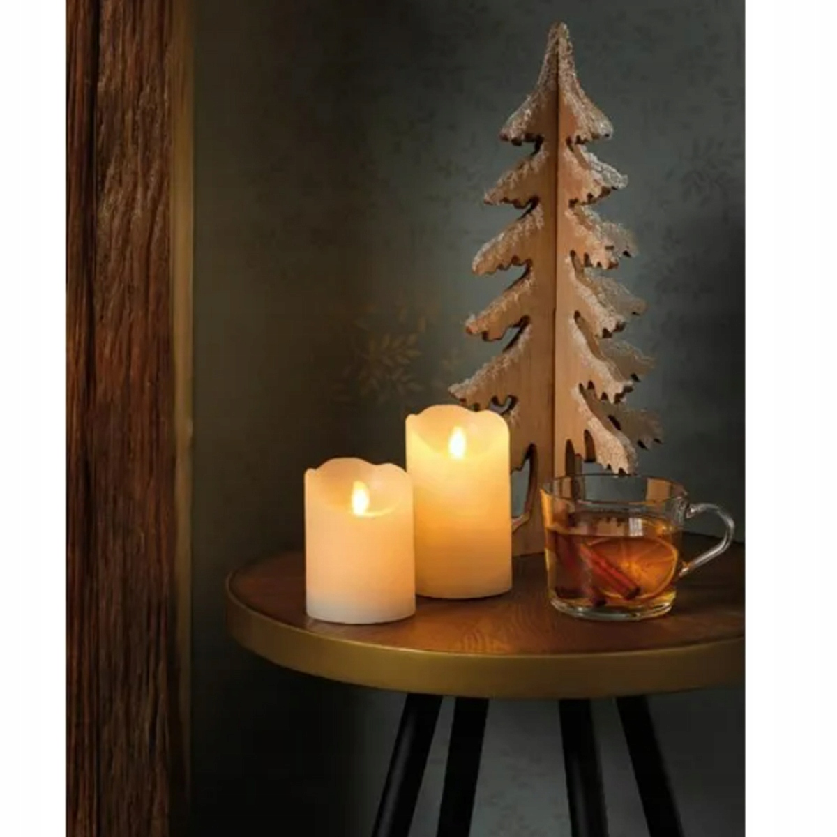 Кроме того, движущееся пламя придает свече вид, будто она горит настоящим огнем. Чтобы придать свечам еще более реалистичный вид, на свечах есть следы воска, вытекающего из свечи.