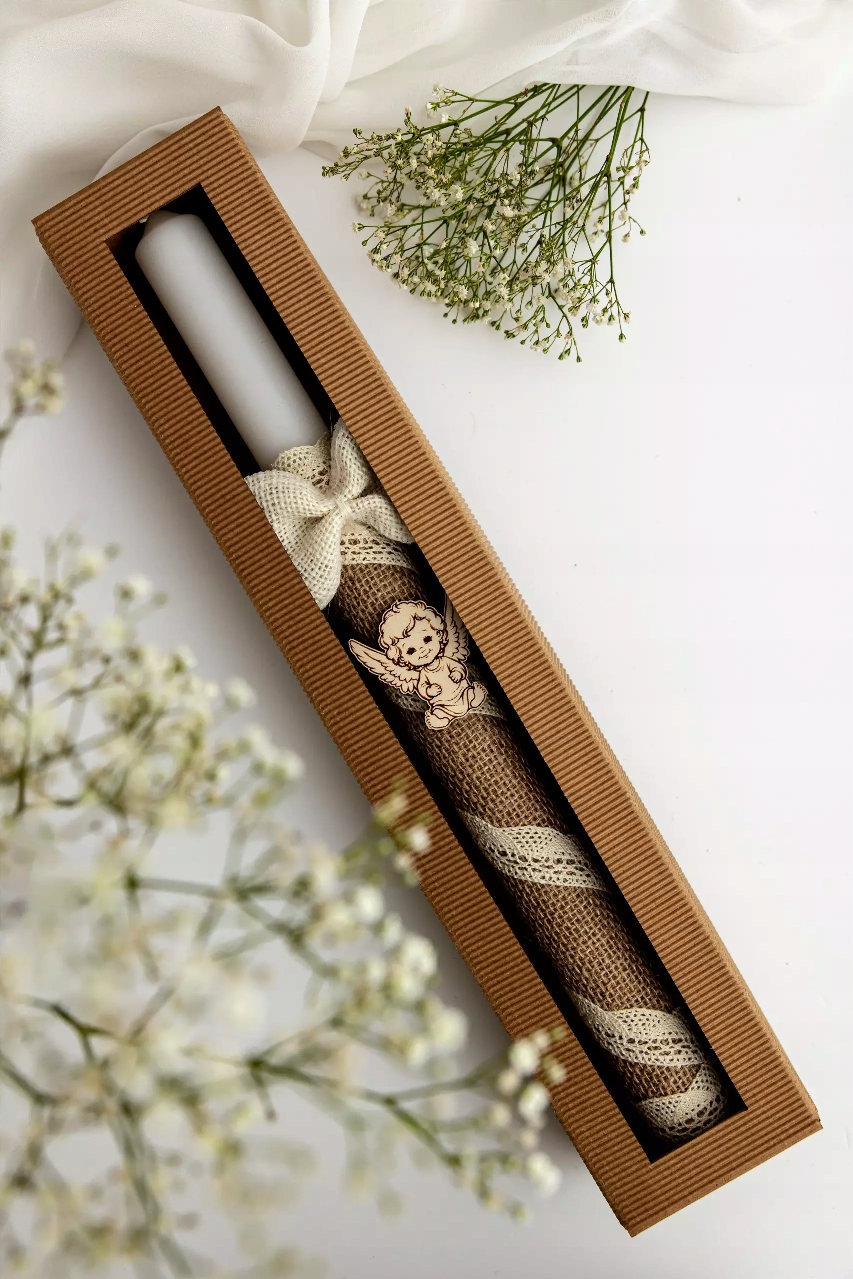 Это твердая коробка с высококачественной гофрированной доской , является идеальным дополнением к Candle для святого крещения .