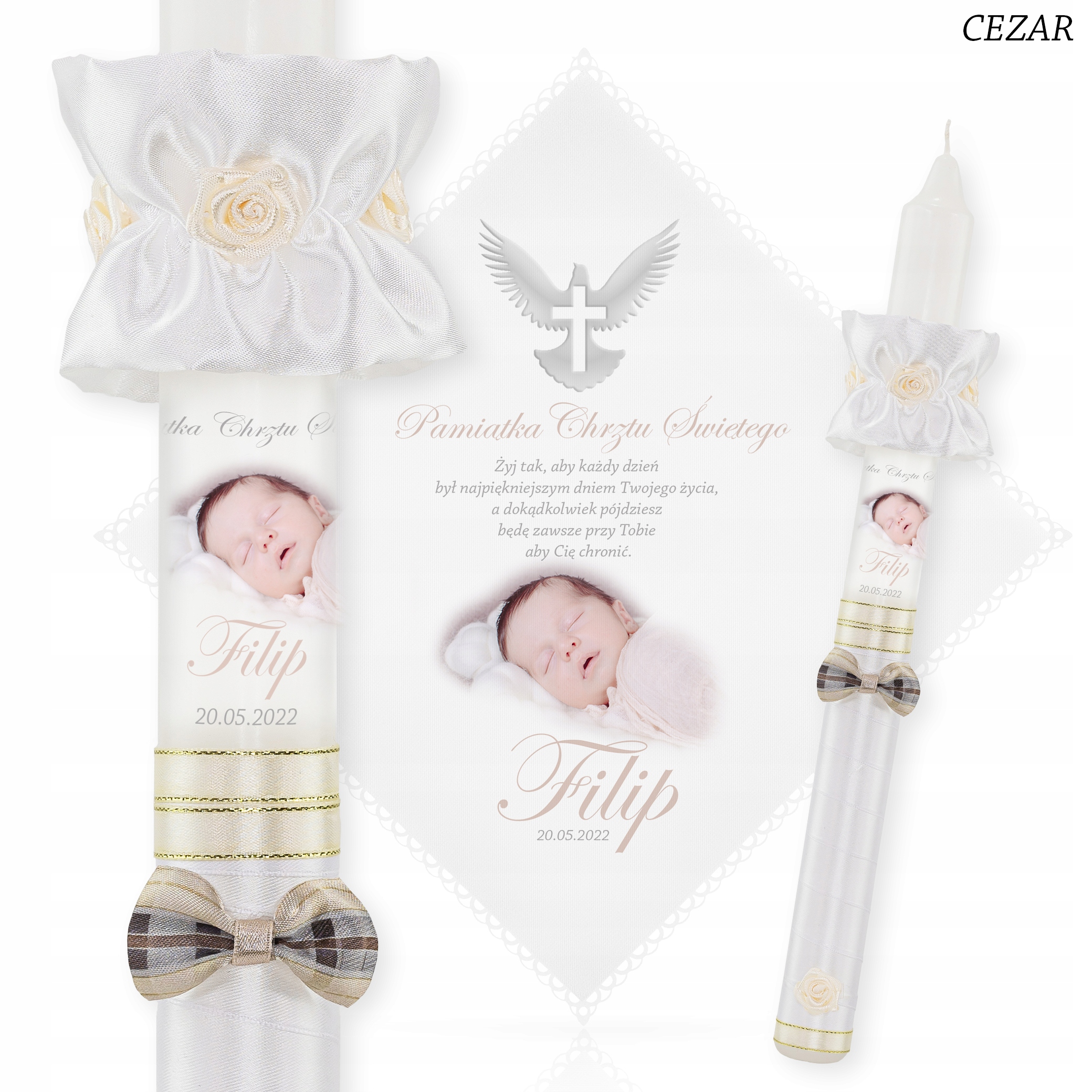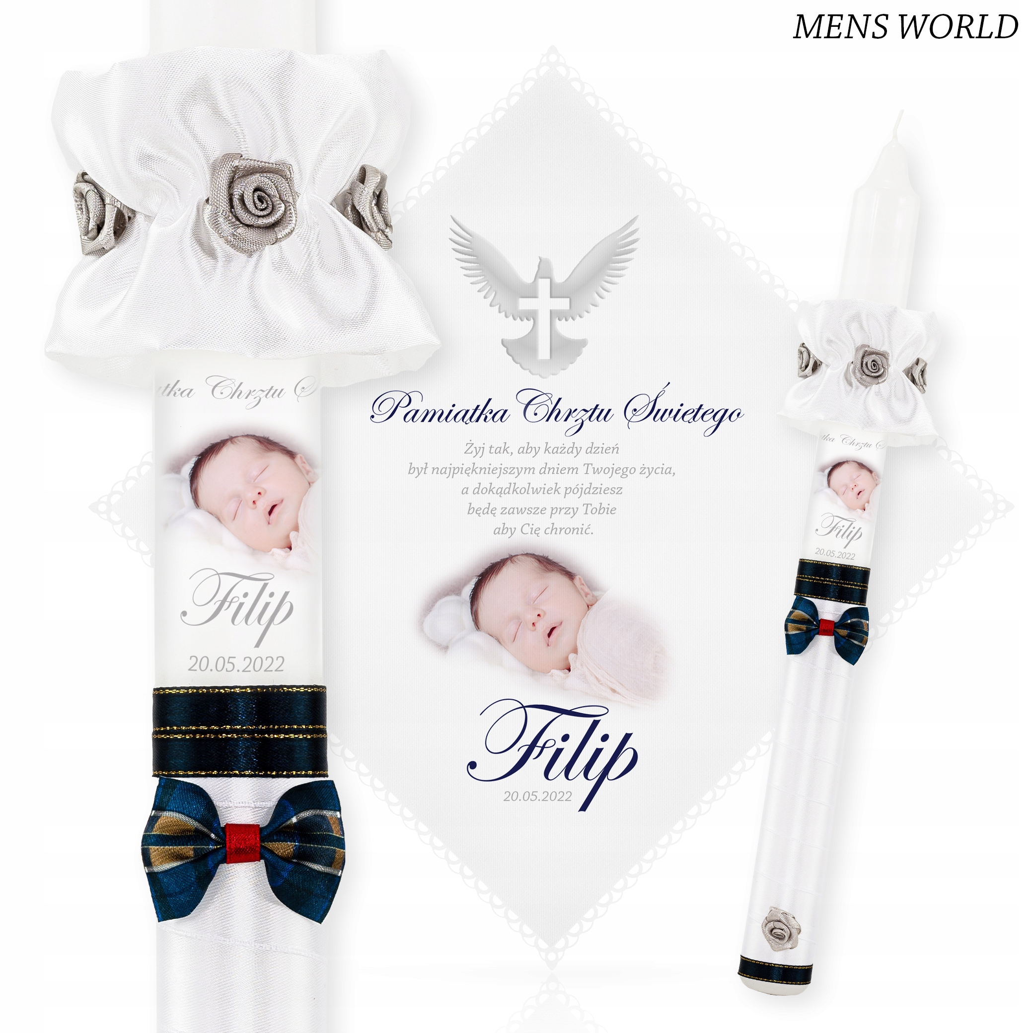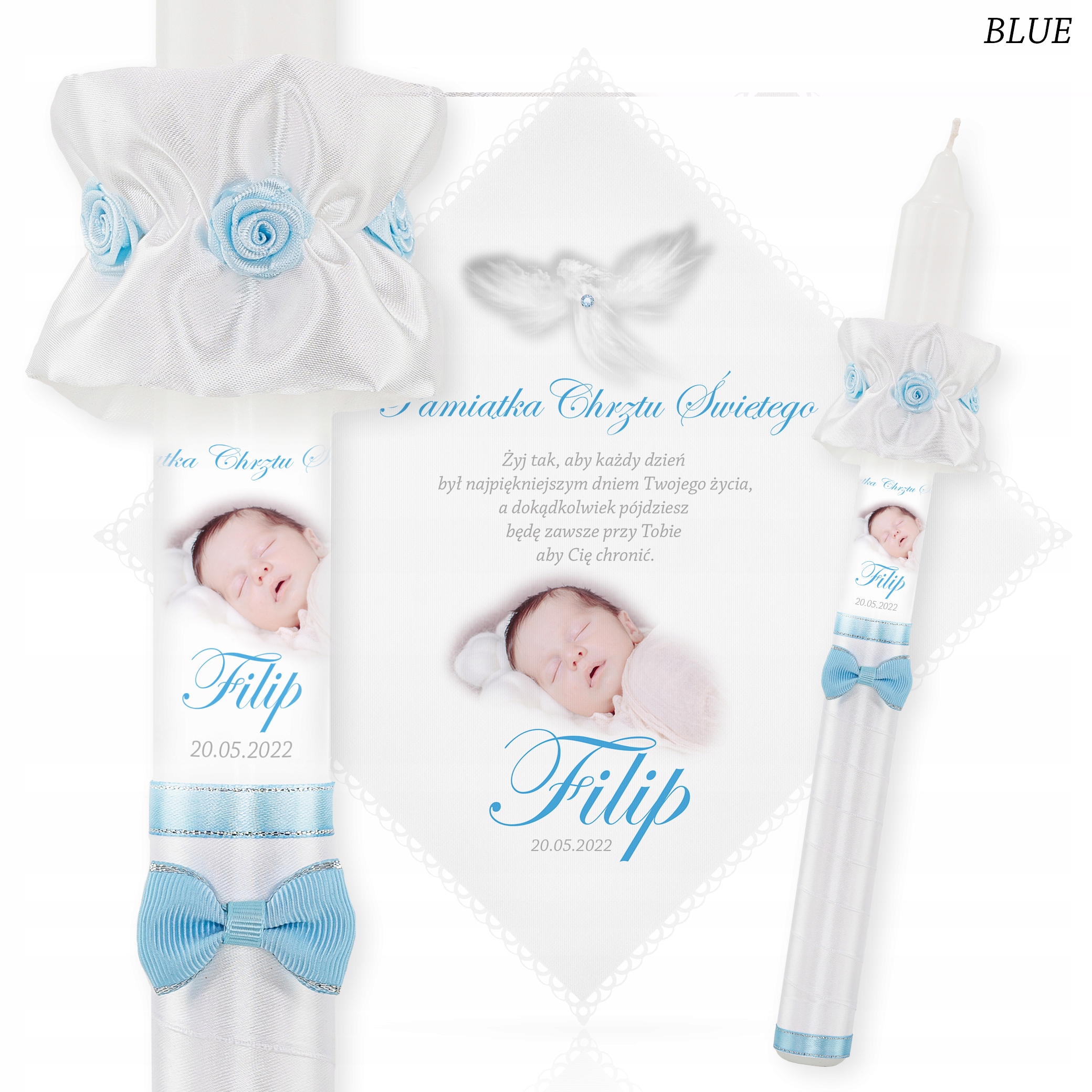 Хаулы для свечей и крещения с фотографией ребенка + деревянная белая коробка KW
