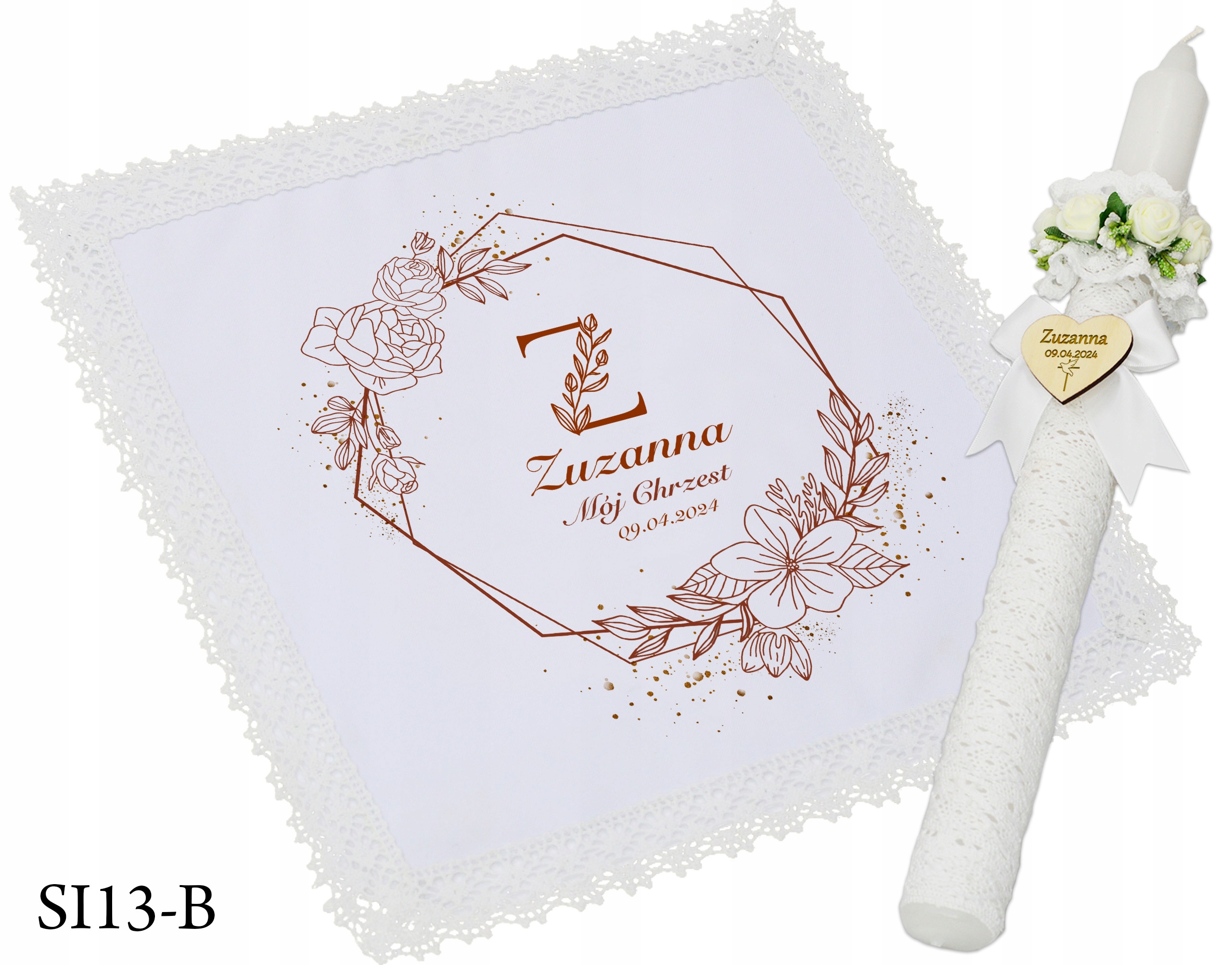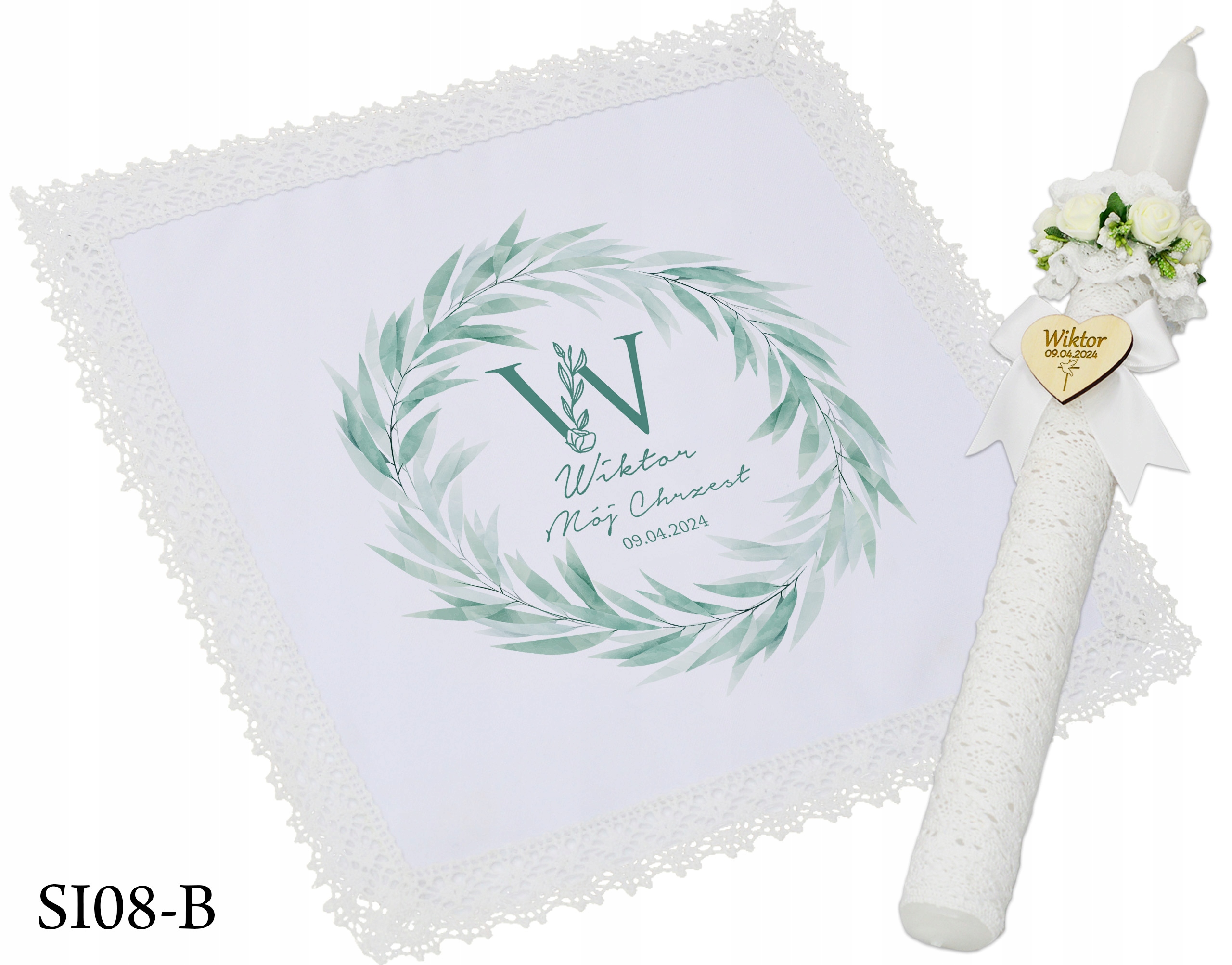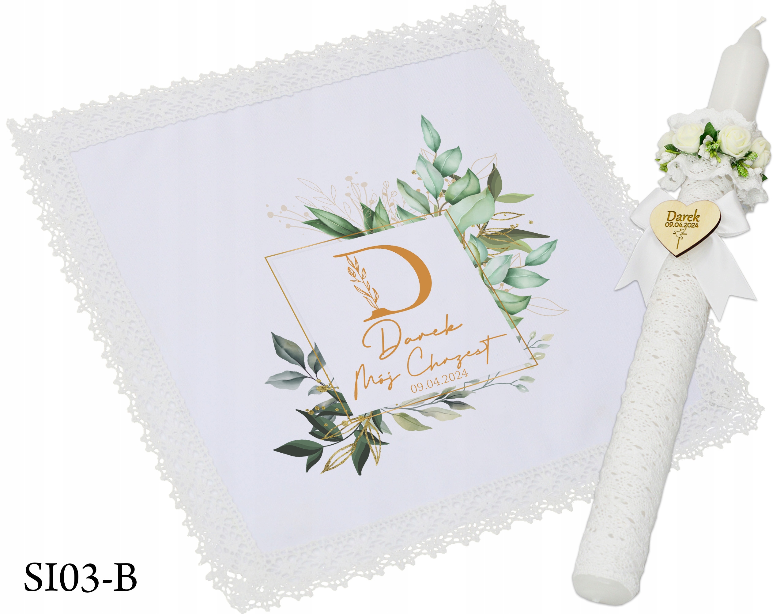 СВІЧКА та ОДЯГ ДЛЯ ХРЕЩЕННЯ ініціал B + ДЕРЕВ'ЯНА Скринька з гравіюванням БІЛИЙ PŚBR