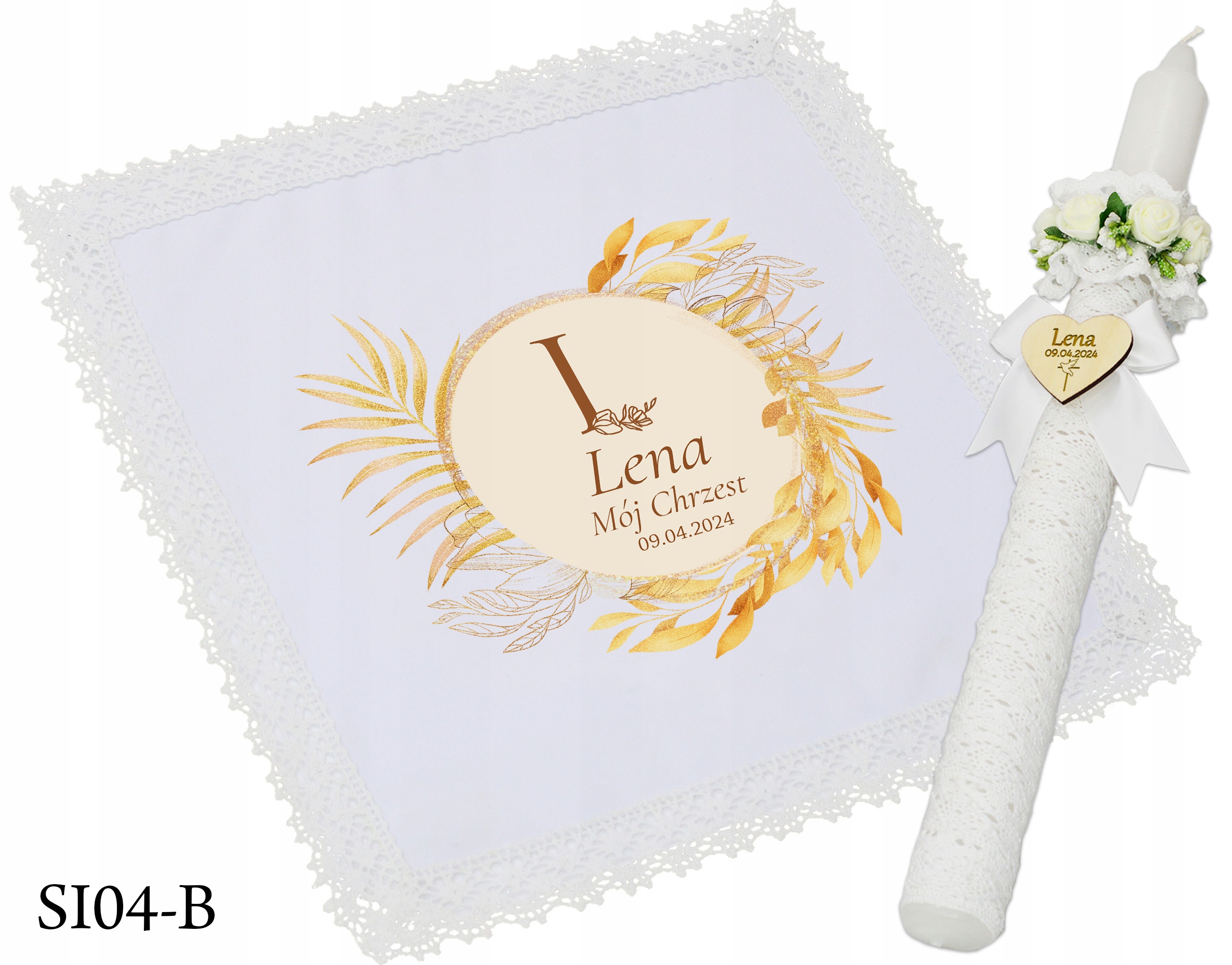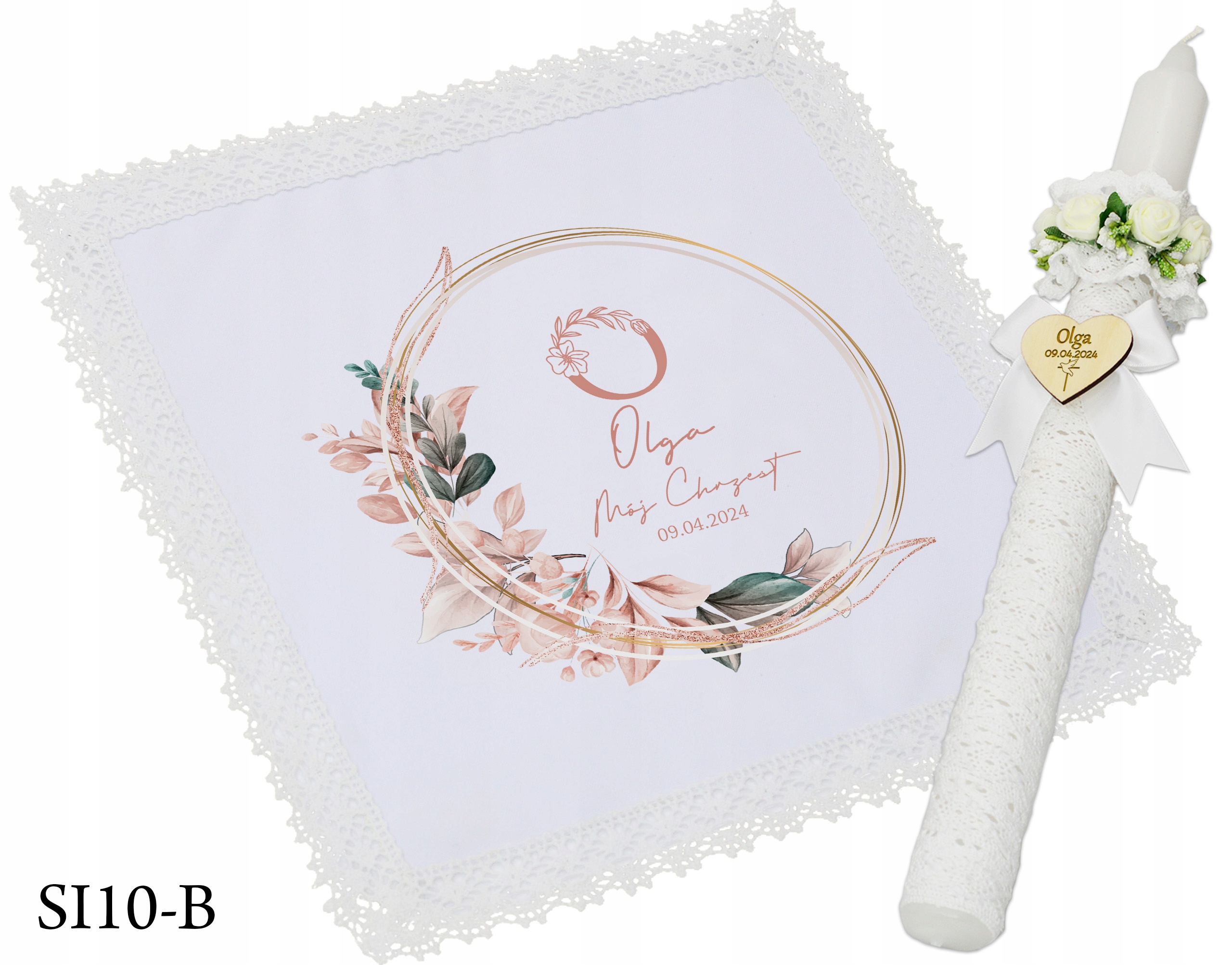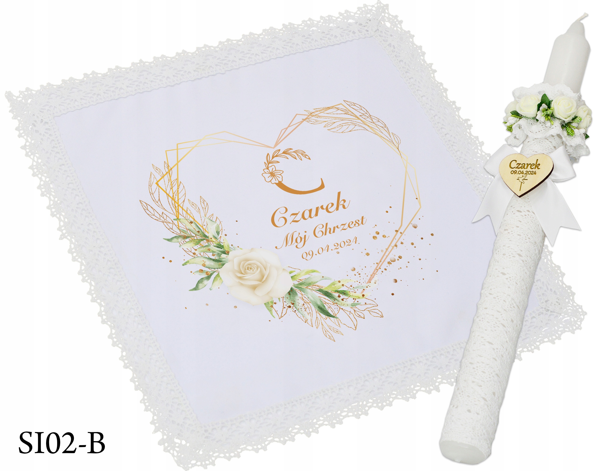 СВІЧКА та ОДЯГ ДЛЯ ХРЕЩЕННЯ ініціал B + ДЕРЕВ'ЯНА Скринька з гравіюванням БІЛИЙ PŚBR