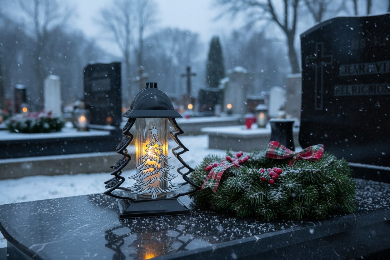 Свеча большая, елка на могилу, серебряная аппликация, рождественский фонарь, 33 см