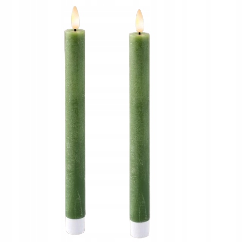 СВЕЧА узкая зеленая восковая на батарейках 2x светодиодные свечи с эффектом пламени 24,5см