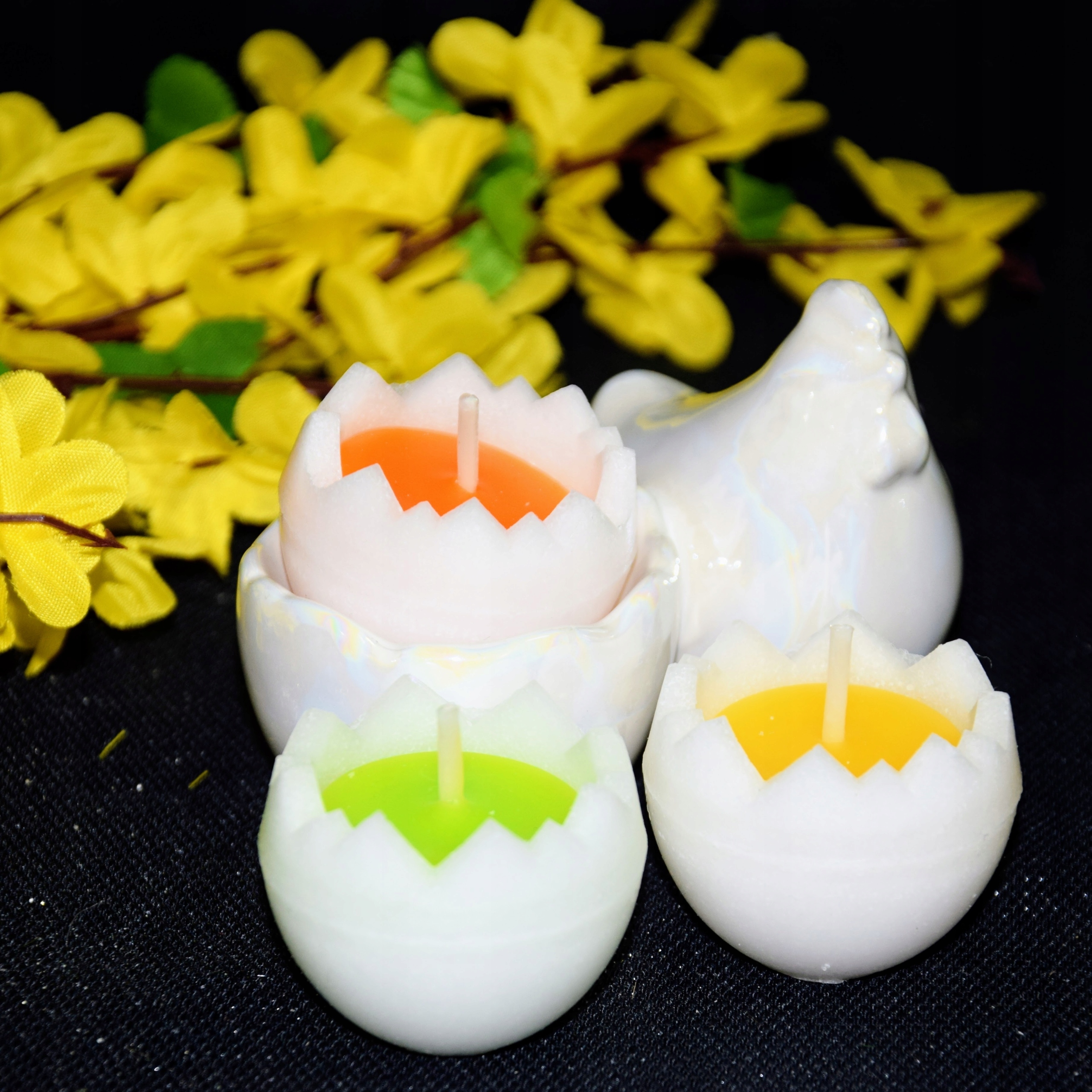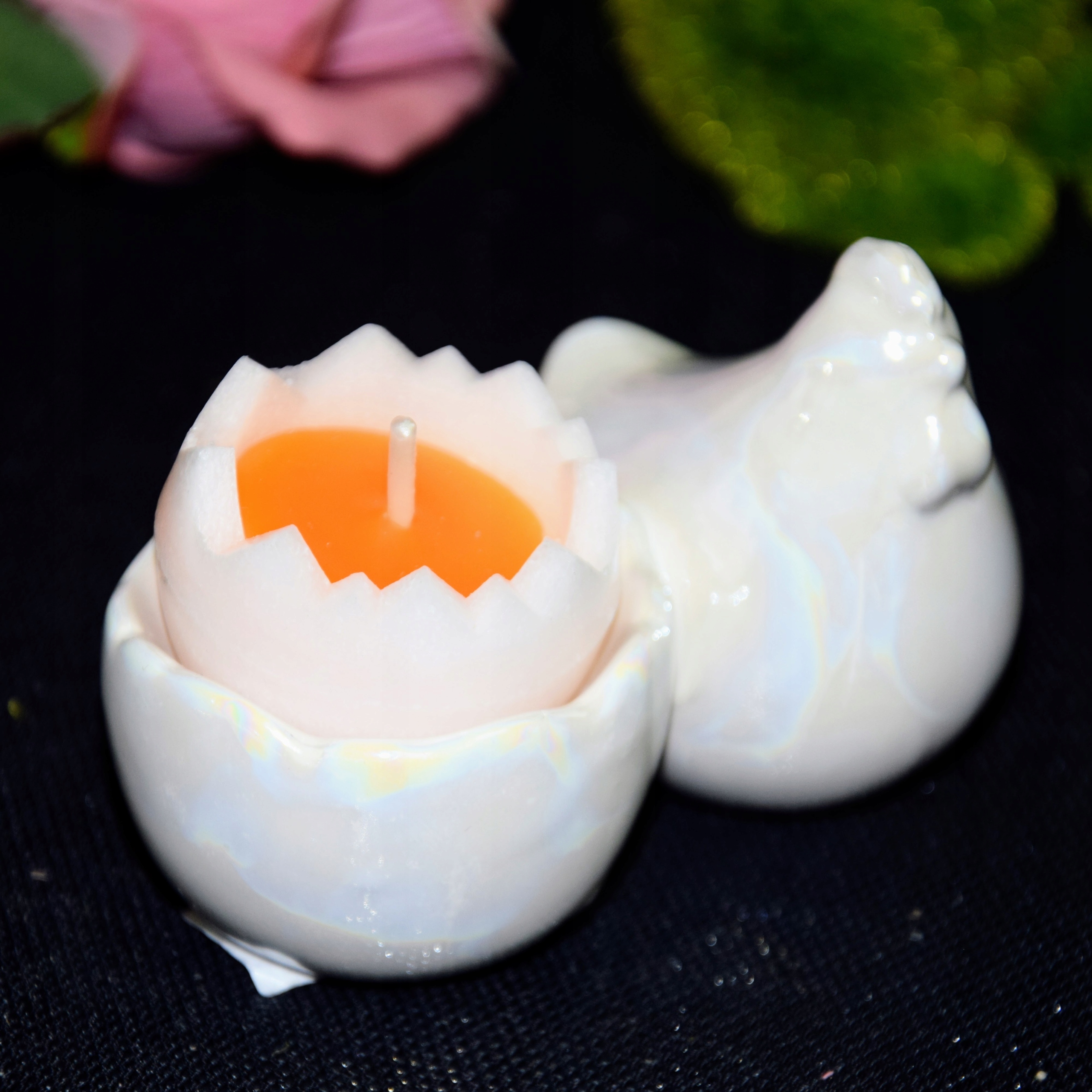 Декоративная свеча в форме половинки яйца. Ароматные.