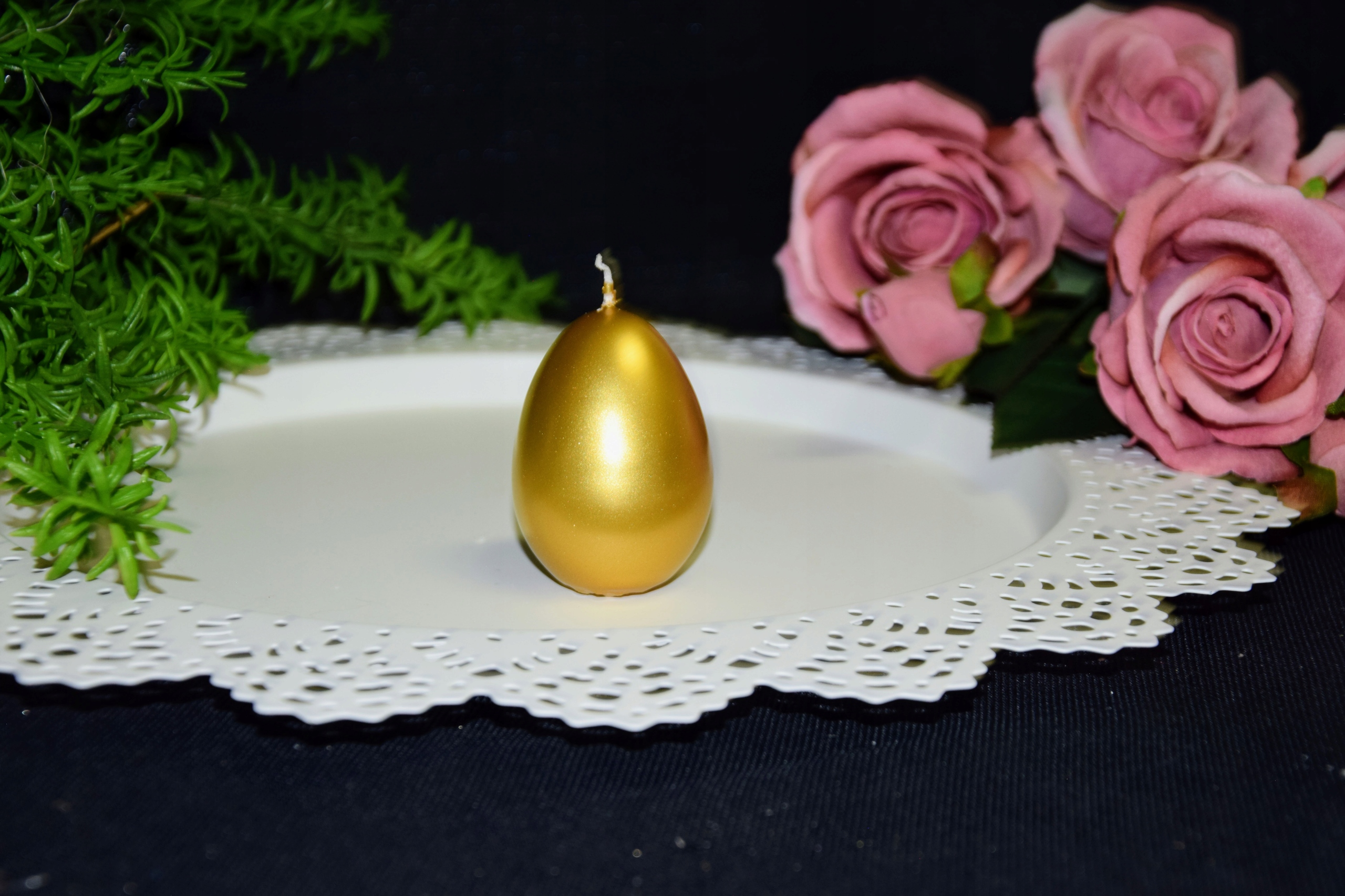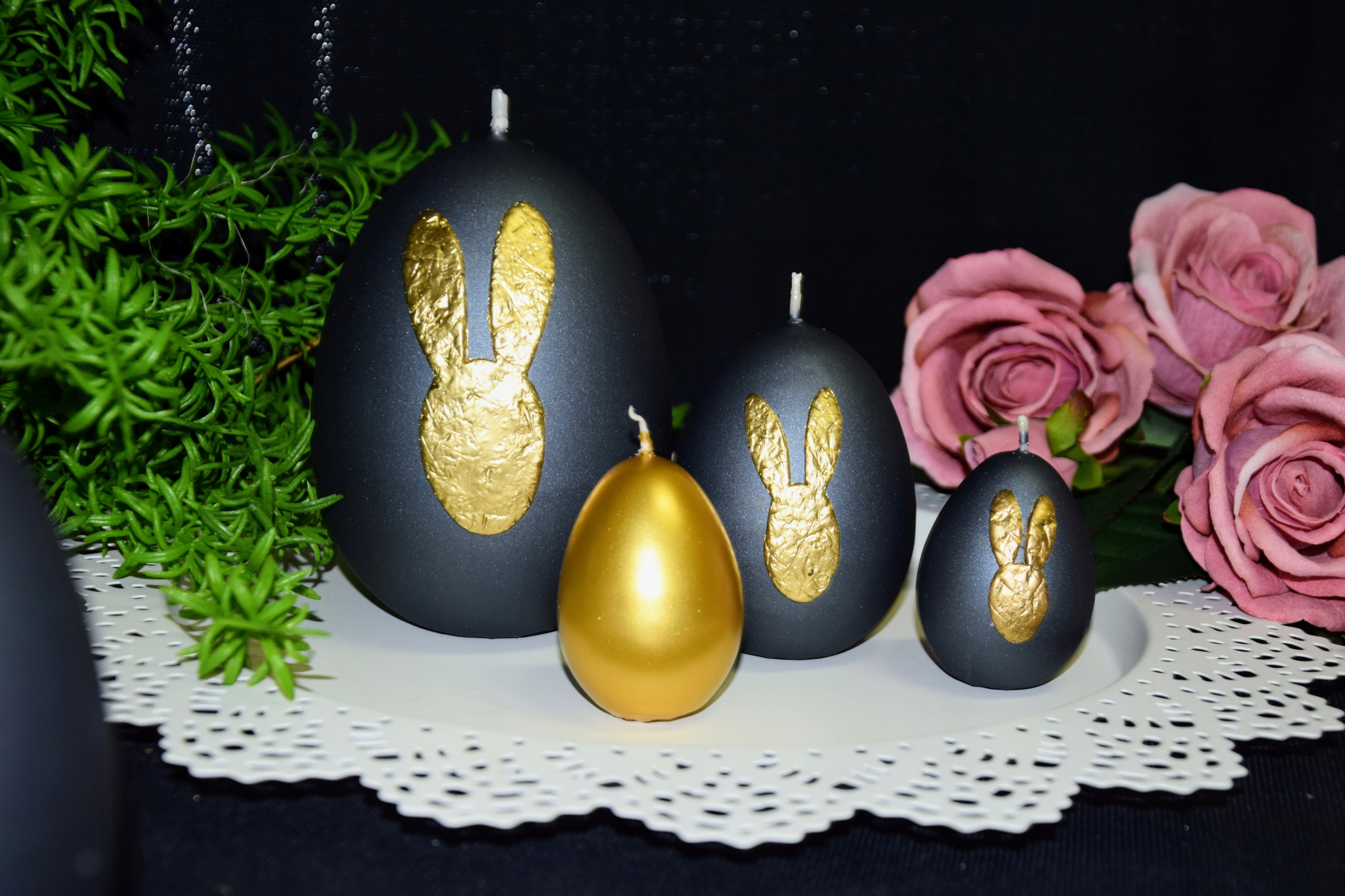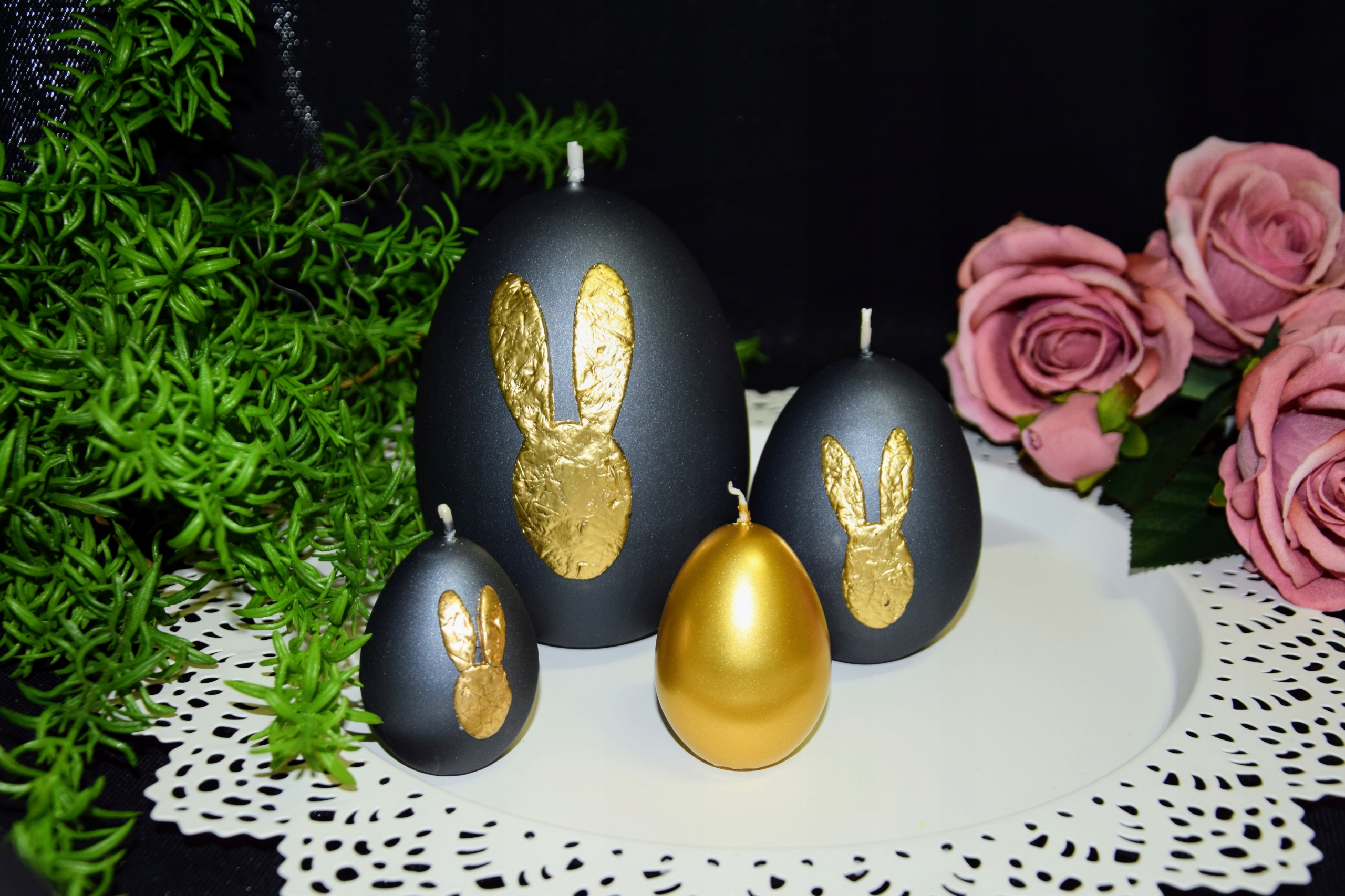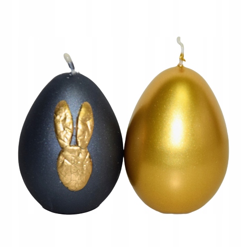 3 декоративных свечи яйцевидной формы МЕТАЛЛИК ПОЛУМАТОВЫЙ черный с золотым зайцем