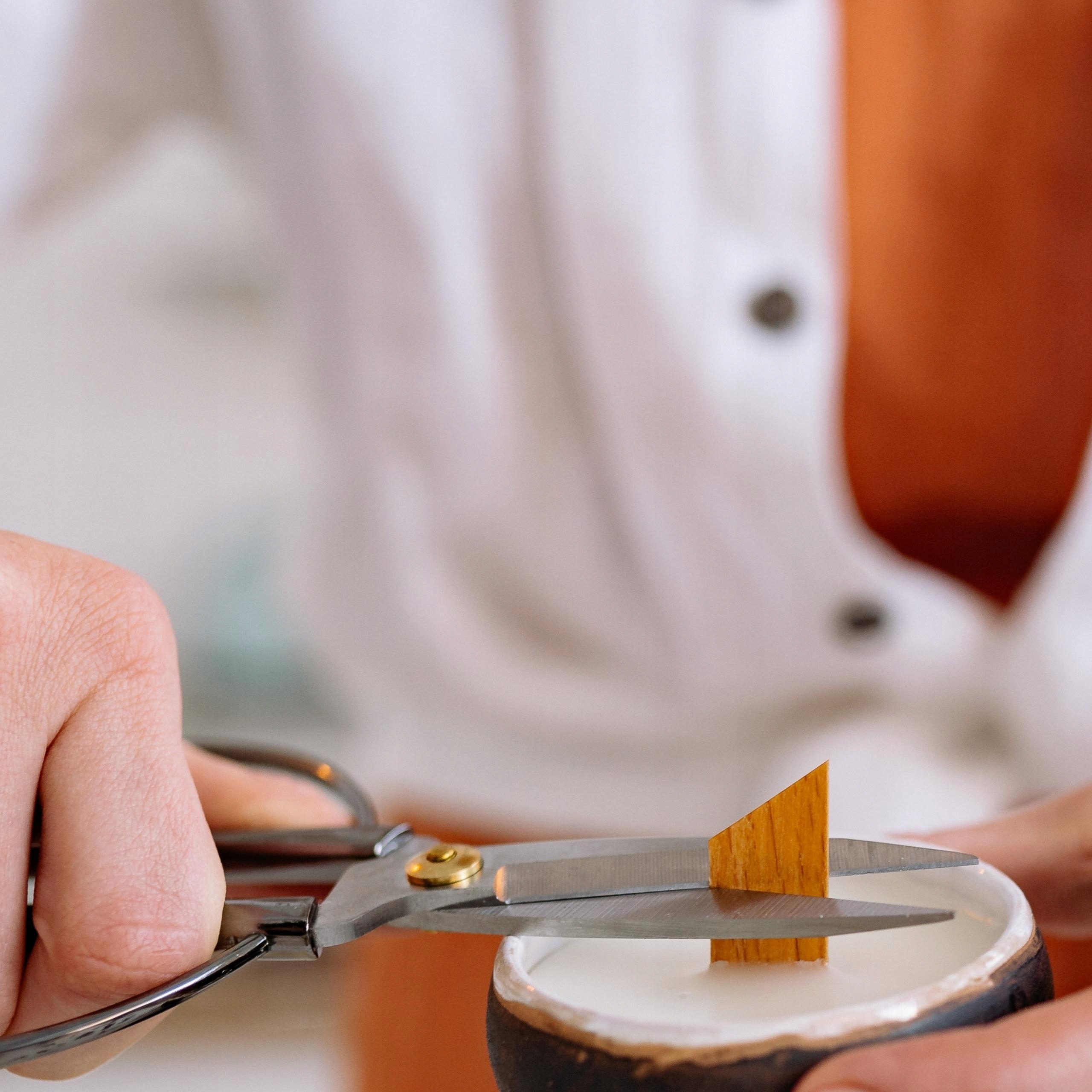 Перед каждым последующим горением подрезайте фитиль – так, чтобы он длина около 0,5 см. Благодаря этому он не будет наклоняться и погружаться в воск, обеспечивая более длительное горение и более приятный аромат.