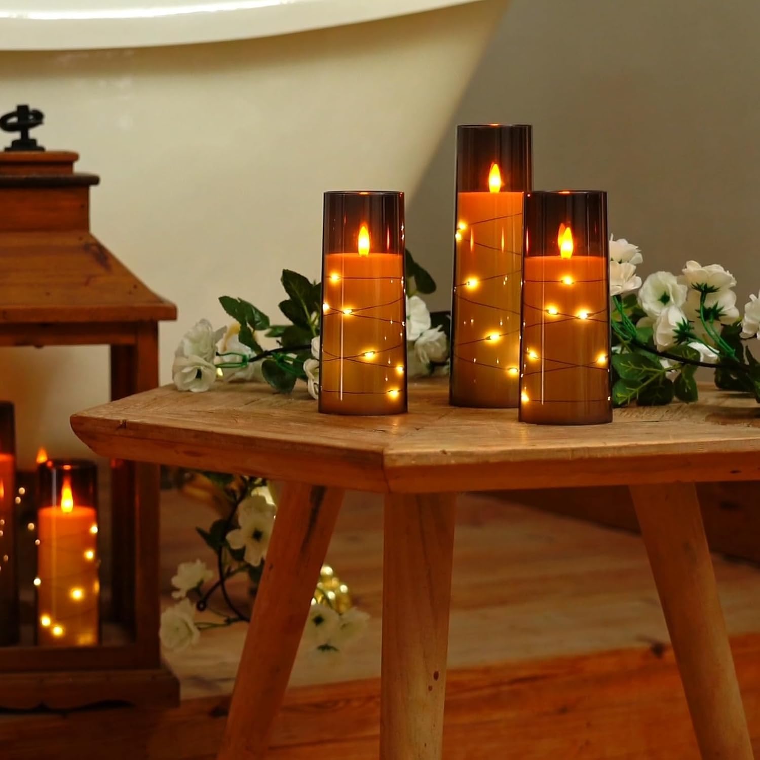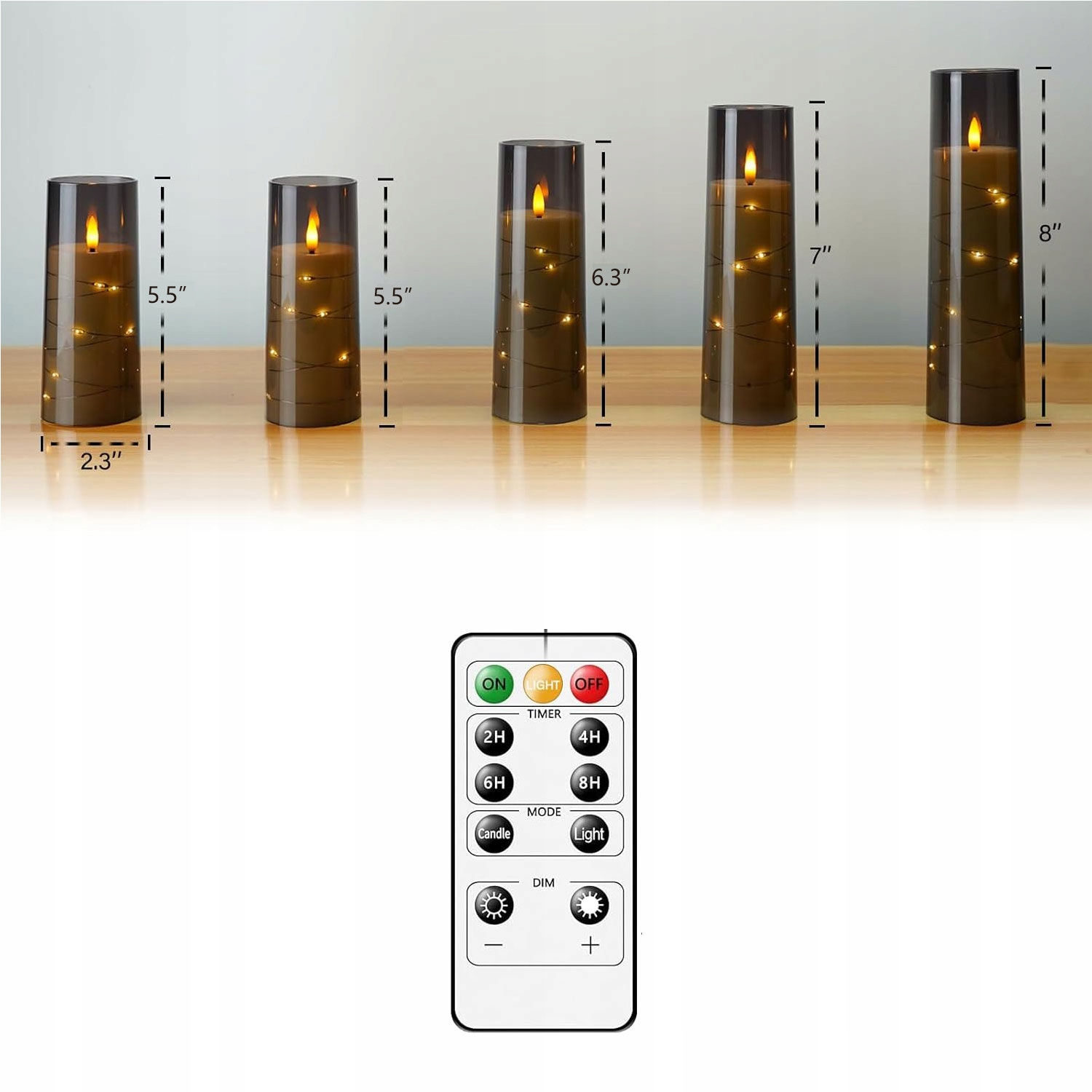 [много размеров]: эти не -члены свечей столба доступны в комплекте из 5 штук, каждая с диаметром 2,3 дюйма. Они доступны на разных высотах, в том числе 5,5 дюйма, 5,5 дюйма, 6,3 дюйма, 7 дюймов и 8 дюймов, чтобы соответствовать вашему декору. Это легко освещает ваше пространство, будь то уютный уголок, расслабляющая ванная комната или центральная точка для особого случая.