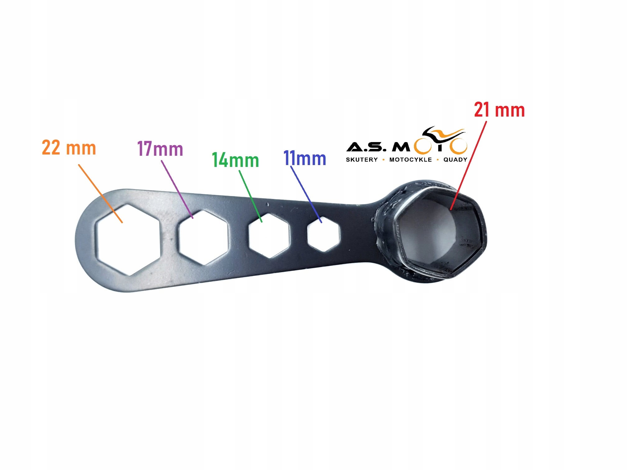 Короткий мотоциклетный ключ, предназначенный в основном для свечей зажигания с головкой 21 мм. Его также можно использовать для откручивания винтов с шестигранной головкой других размеров.