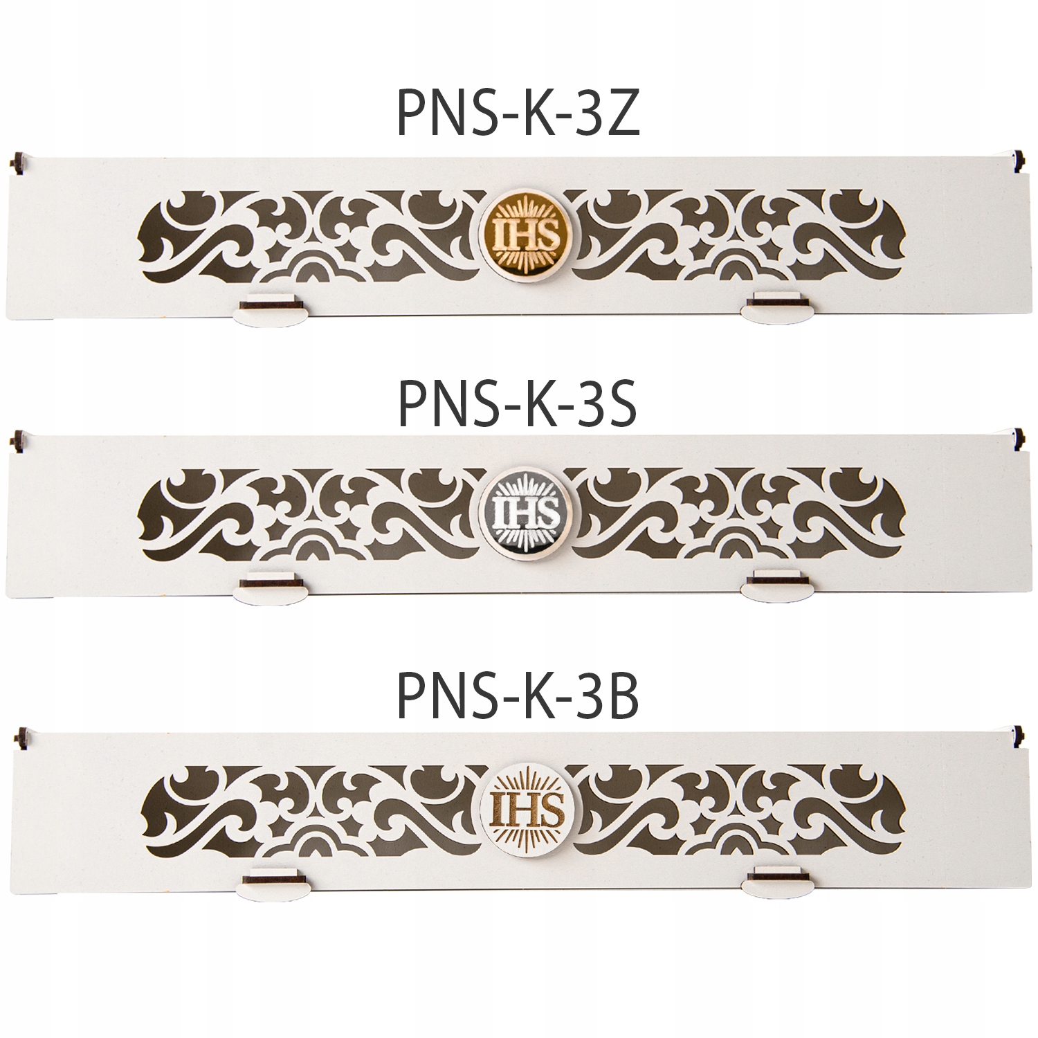 Красивая белая коробочка для свечей. Верх украшен красивым ажурным узором и декоративным элементом с надписью IHS.