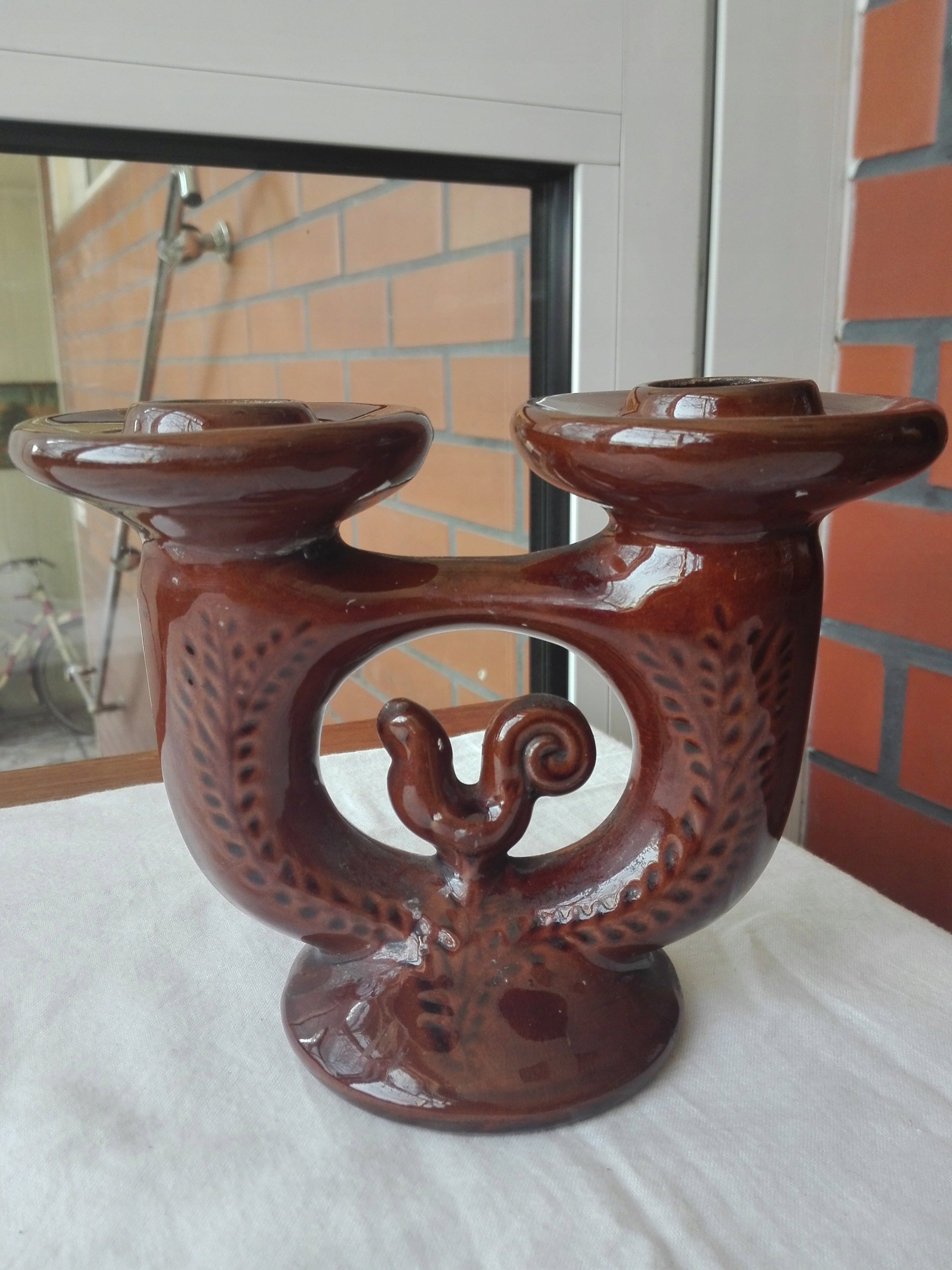 - Подсвечник изготовлен в Кооперативе народных и художественных ремесел «SZTUKA KUJAWSKA» во Влоцлавеке в 1970-е годы. Ручки подсвечника соединены - посередине петушок (курочка).