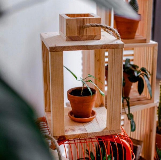 Декоративный деревянный фонарь для цветов или свечей. Атмосферный фонарь из необработанной сосновой древесины идеально подходит для украшения интерьера и сада. Прекрасно смотрится как с деревенским, так и с современным декором.