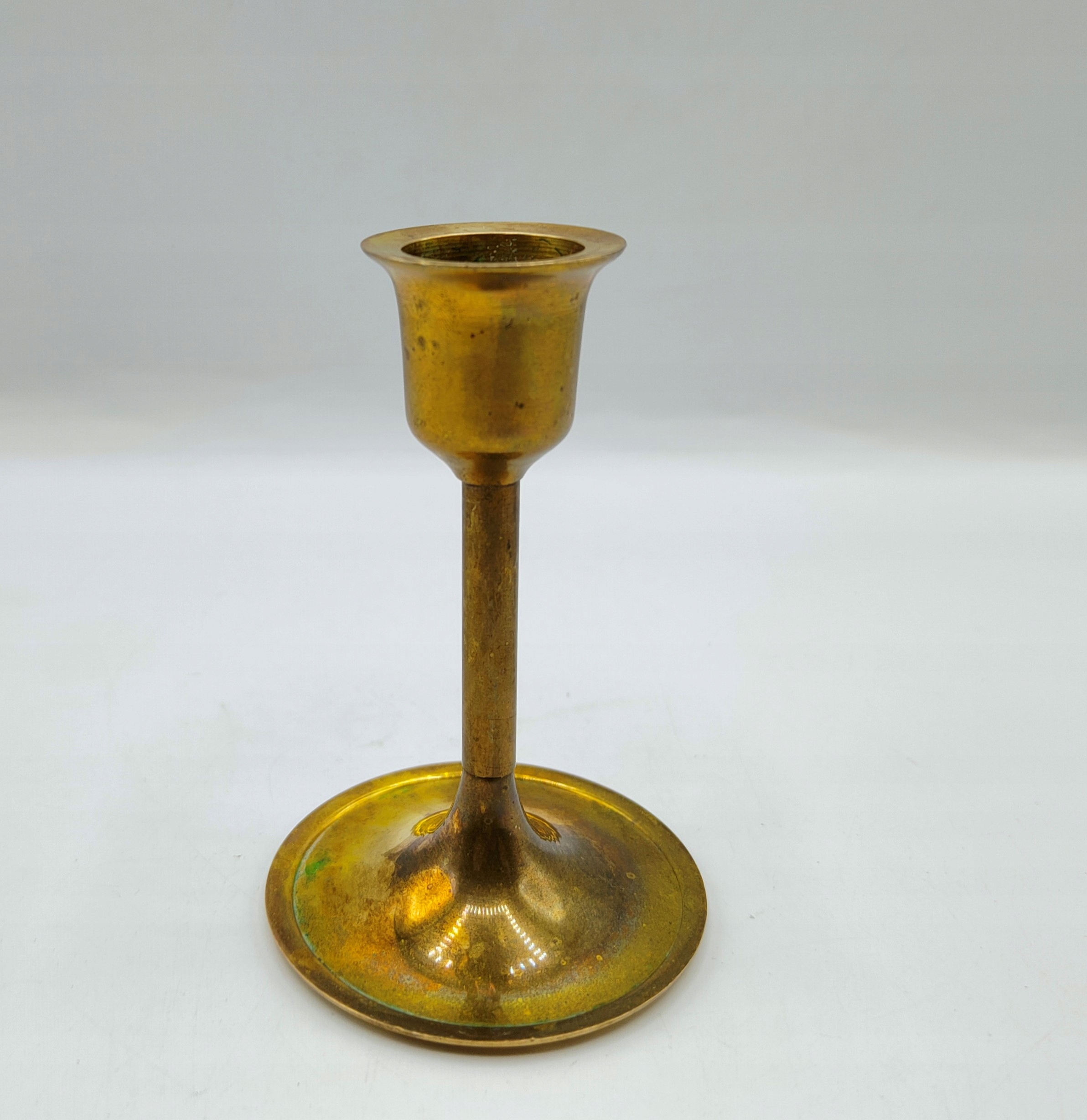 Старый ЛАТУННЫЙ ПОДСВЕЧНИК, классический, видна красивая патина