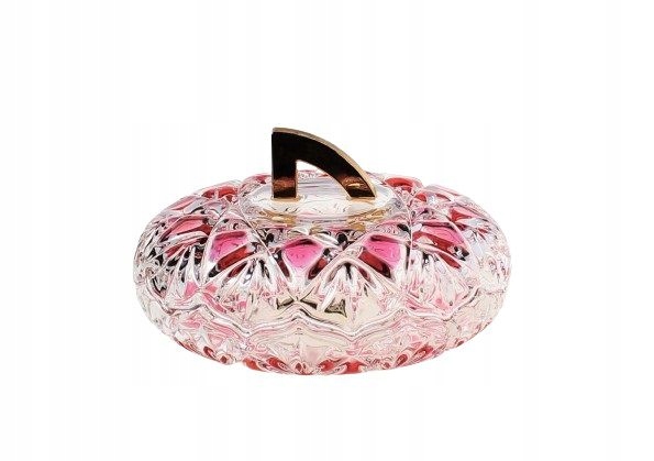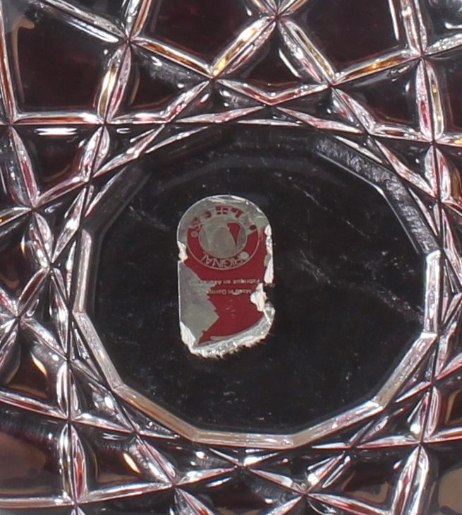 Коробка для шоколада изготовлена из бесцветного прессованного стекла. Крышку украшает позолоченная башенка из пластика. Отдельные детали сосуда были окрашены в розовый цвет. Коробка шоколада произведена немецким стекольным заводом Walther. Датировка: после 1990 года