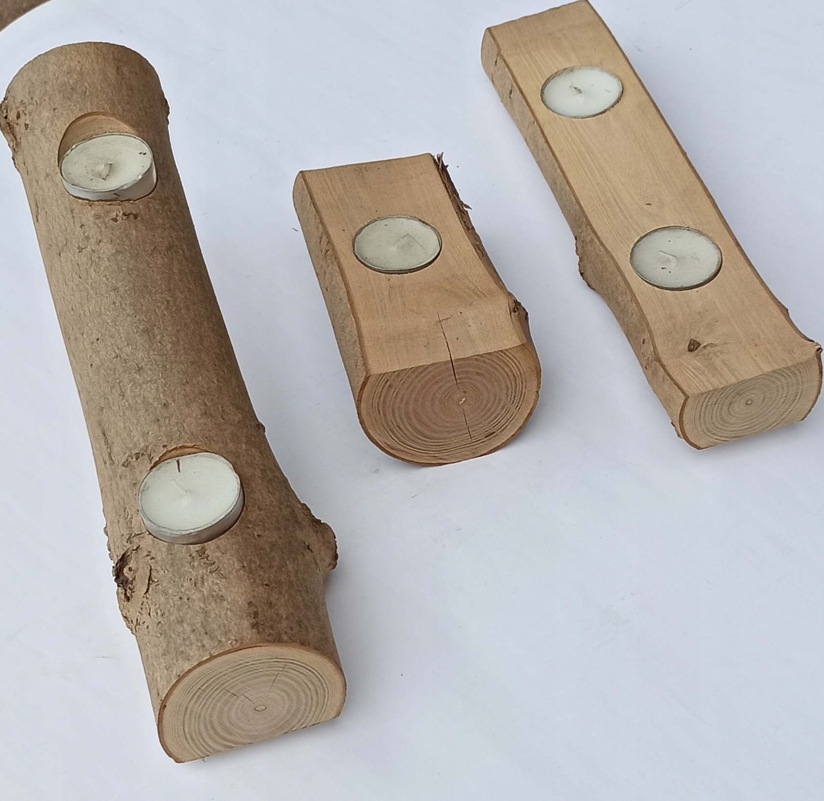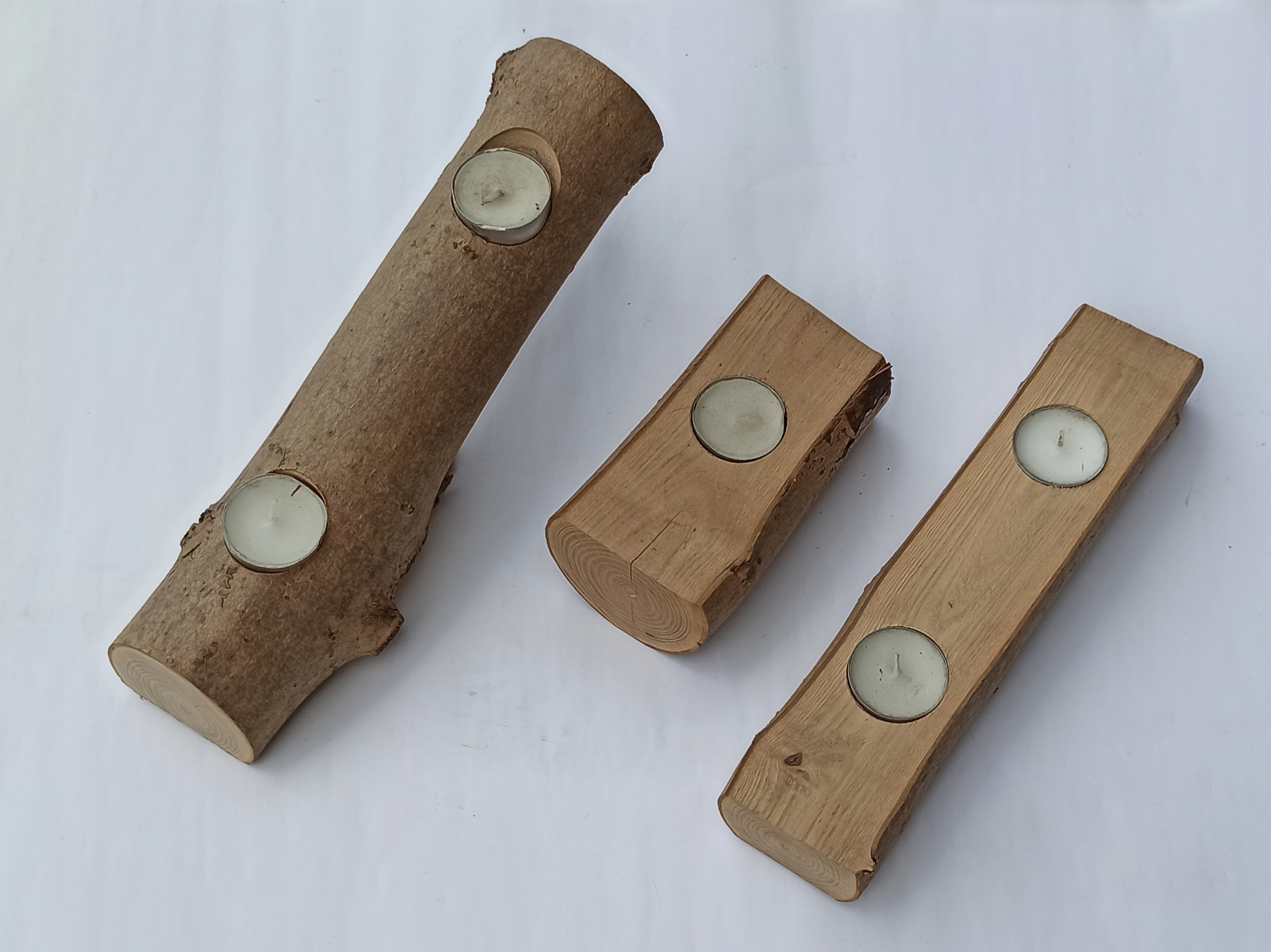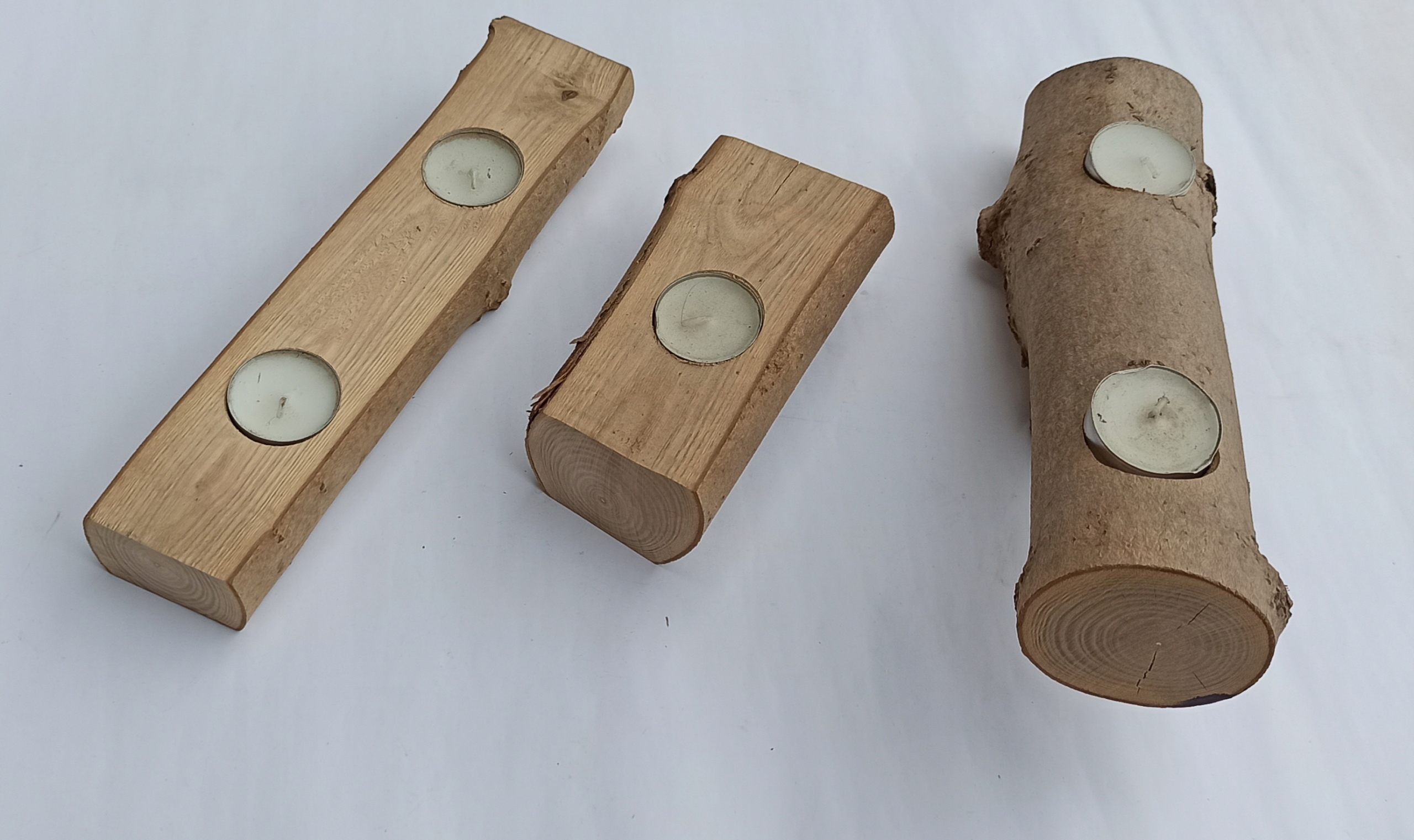 СВІЧНИКИ 3 НАТУРАЛЬНЕ ДЕРЕВО + СВІЧКИ