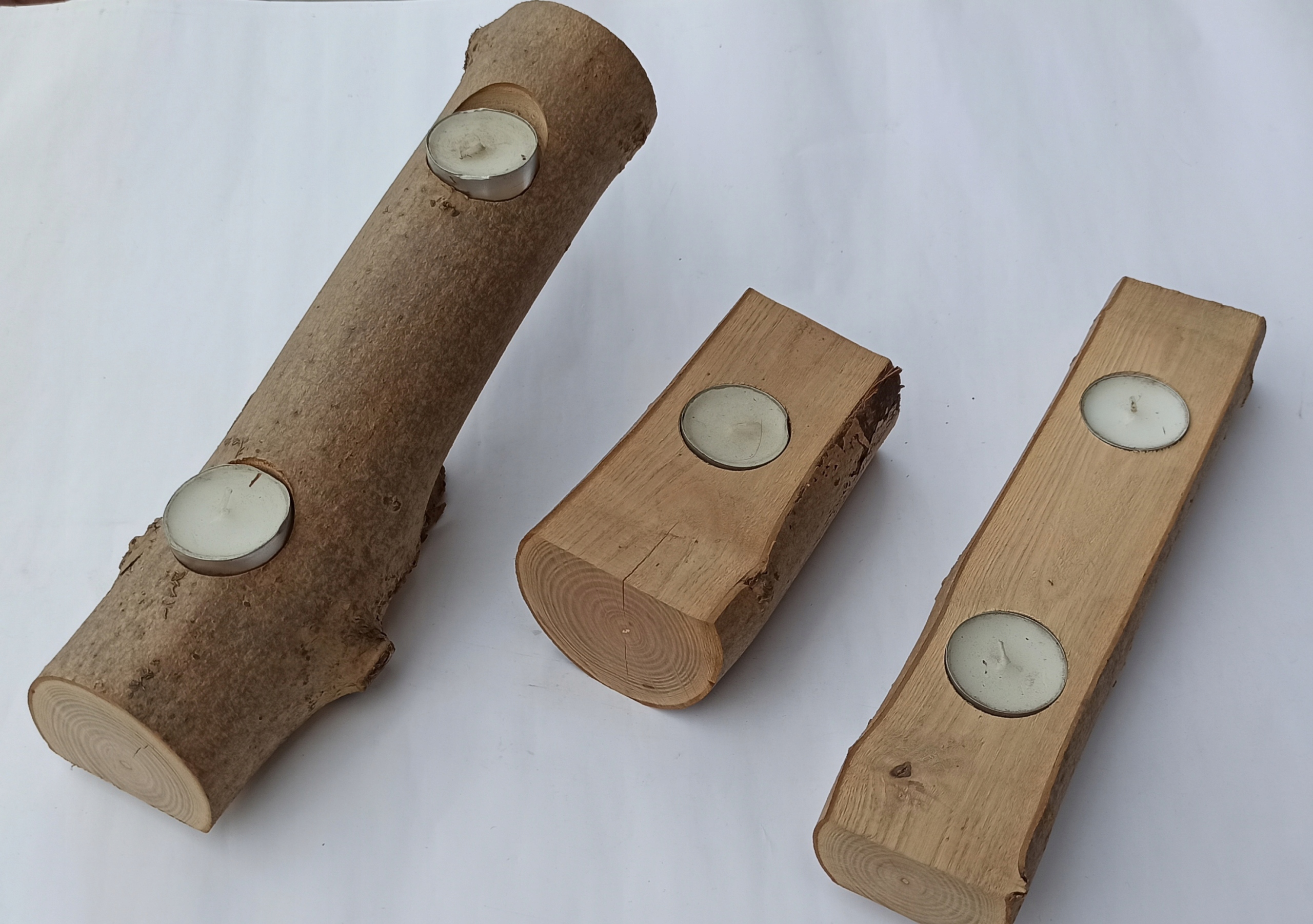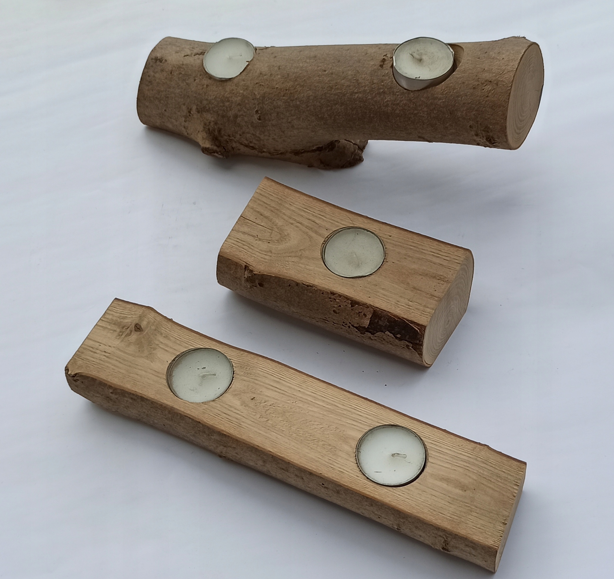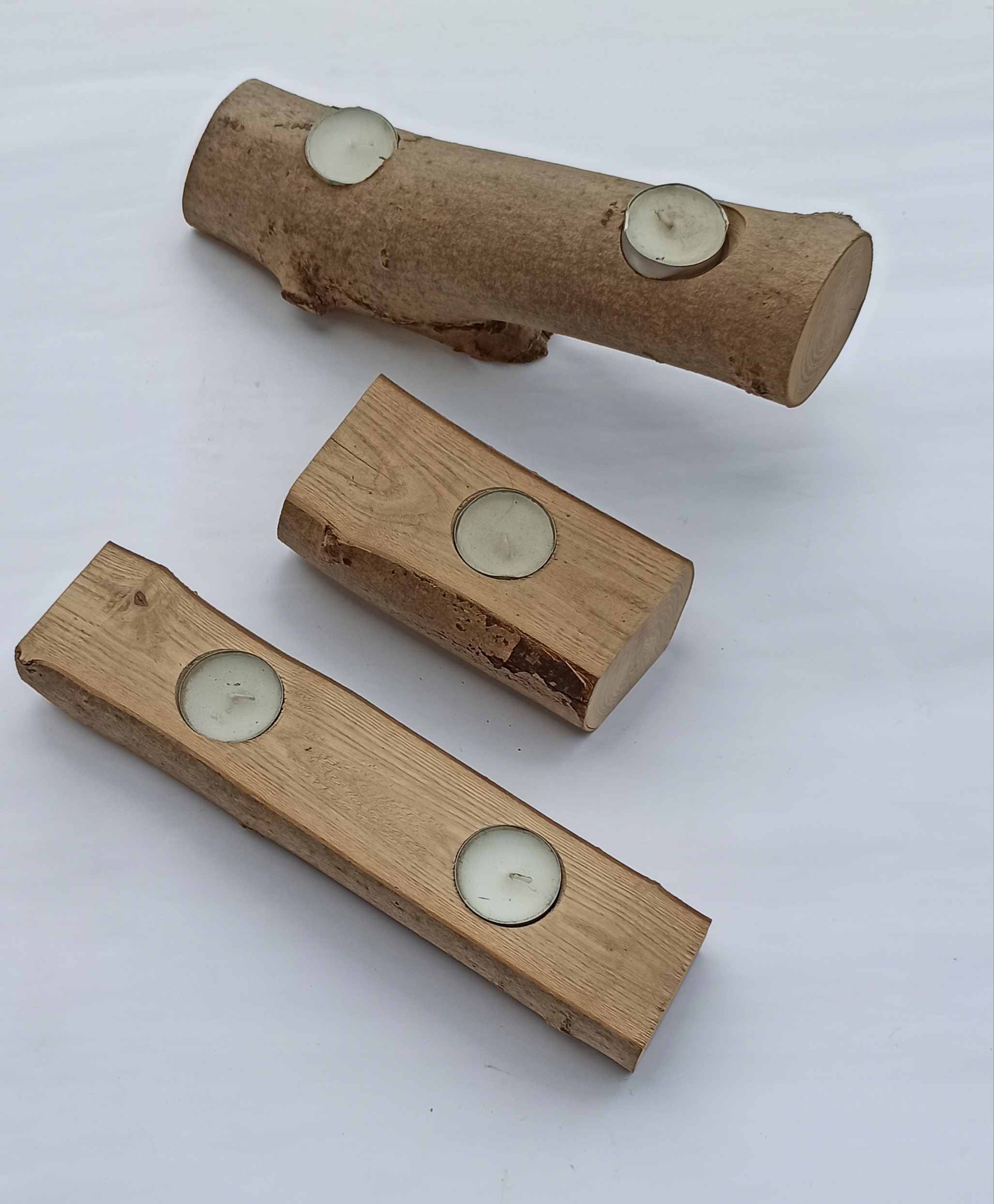 СВІЧНИКИ 3 НАТУРАЛЬНЕ ДЕРЕВО + СВІЧКИ