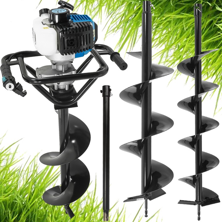 В комплекте с ТРИ сверл 15, 20 и 25см и удлинителем на 50 см